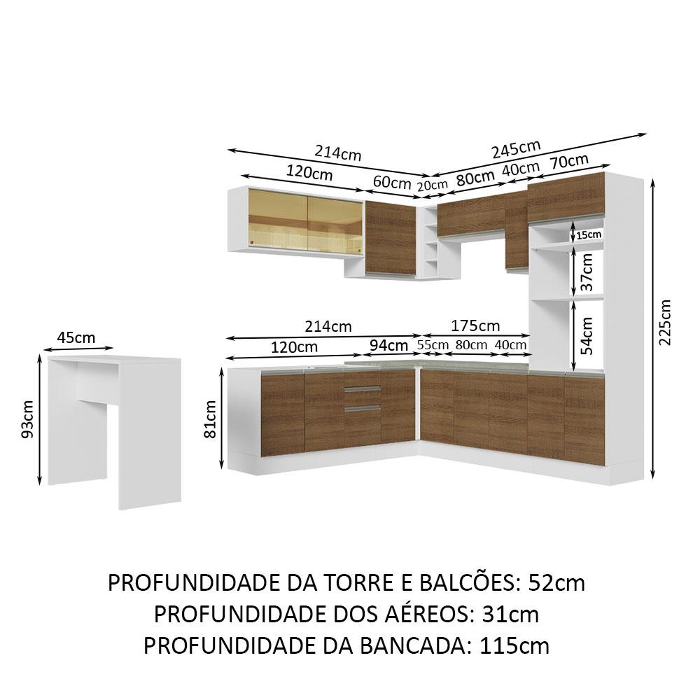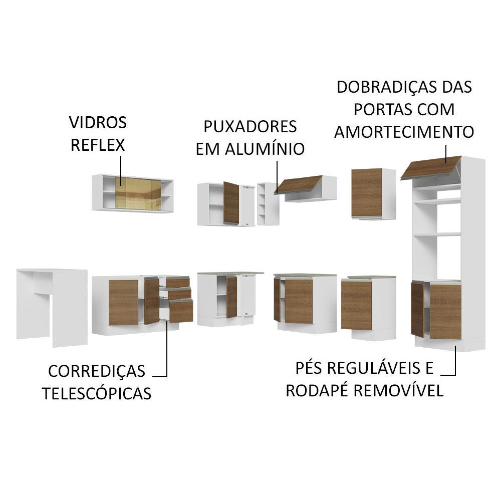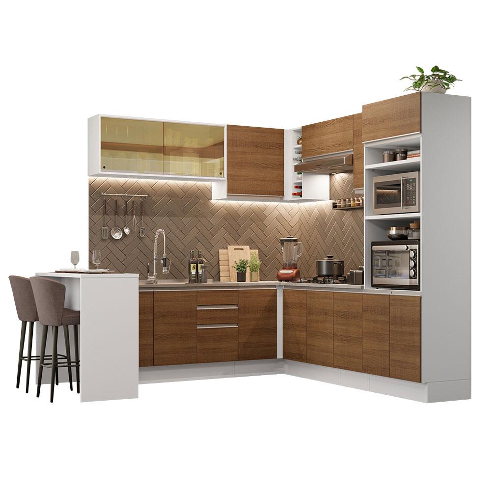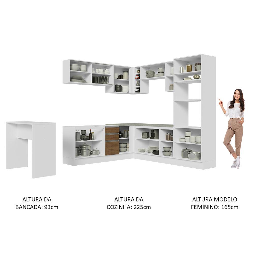 Cozinha Completa de Canto Madesa Glamy 504001 com Armário e Bancada (S/ Tampo e Pia) - Branco/Rustic
