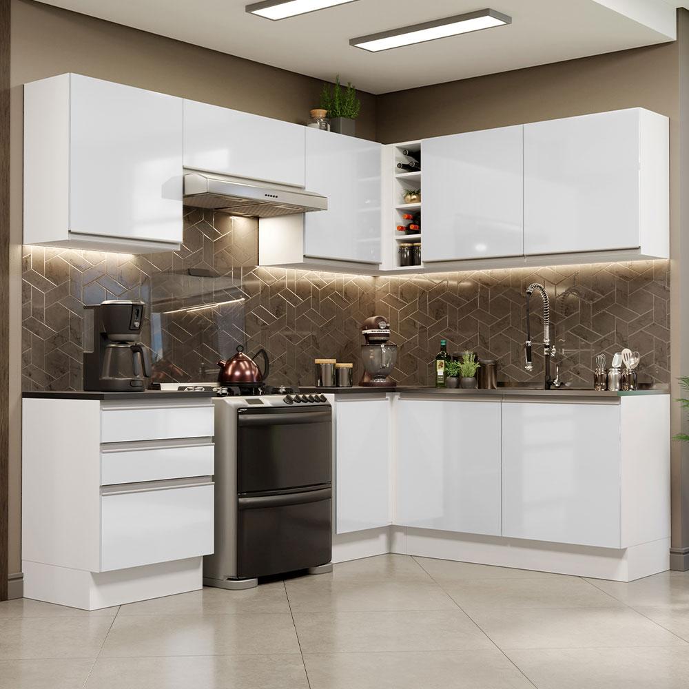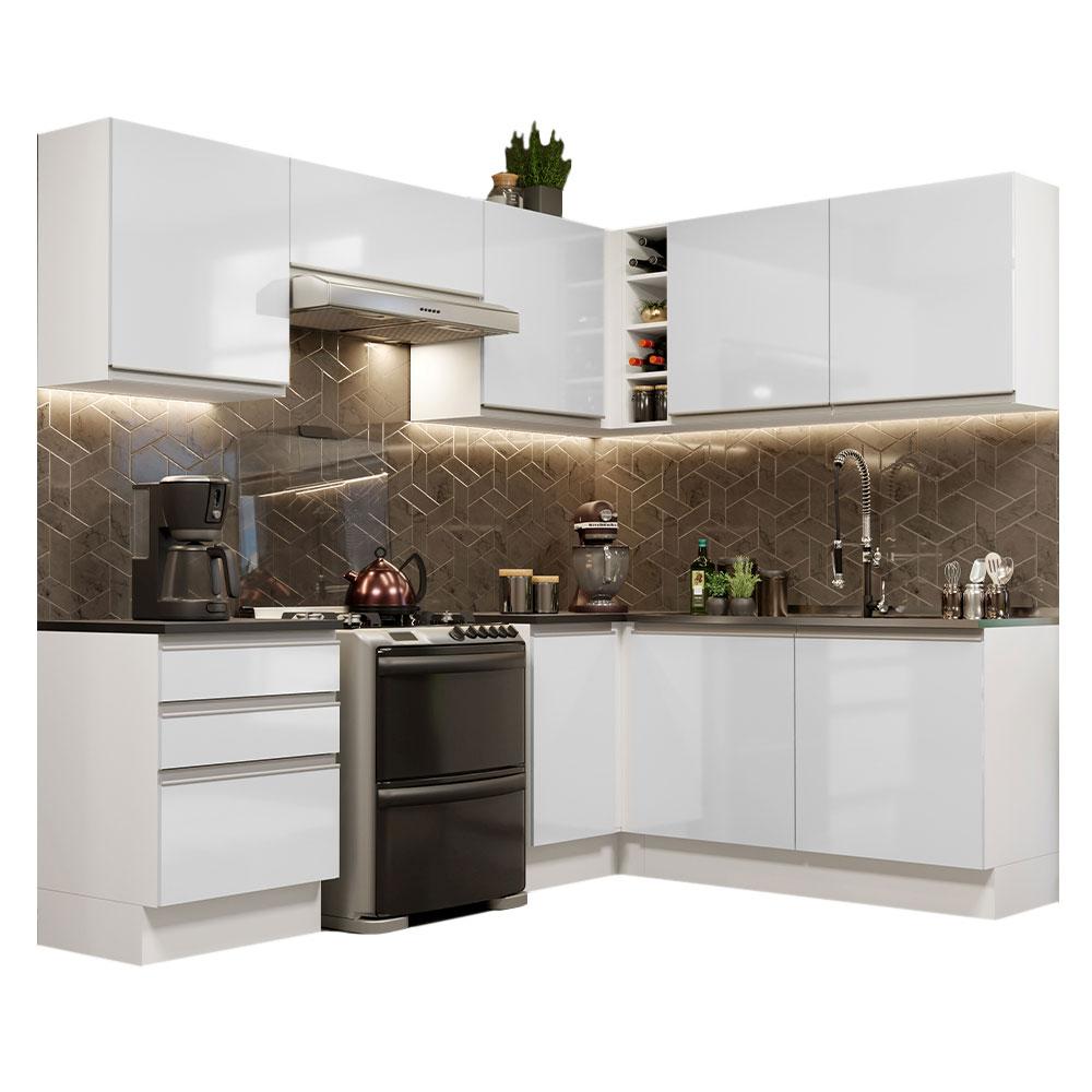 Cozinha Completa de Canto 100% MDF Madesa Acordes 409001 Armário e Balcão - Frentes Branco Brilho