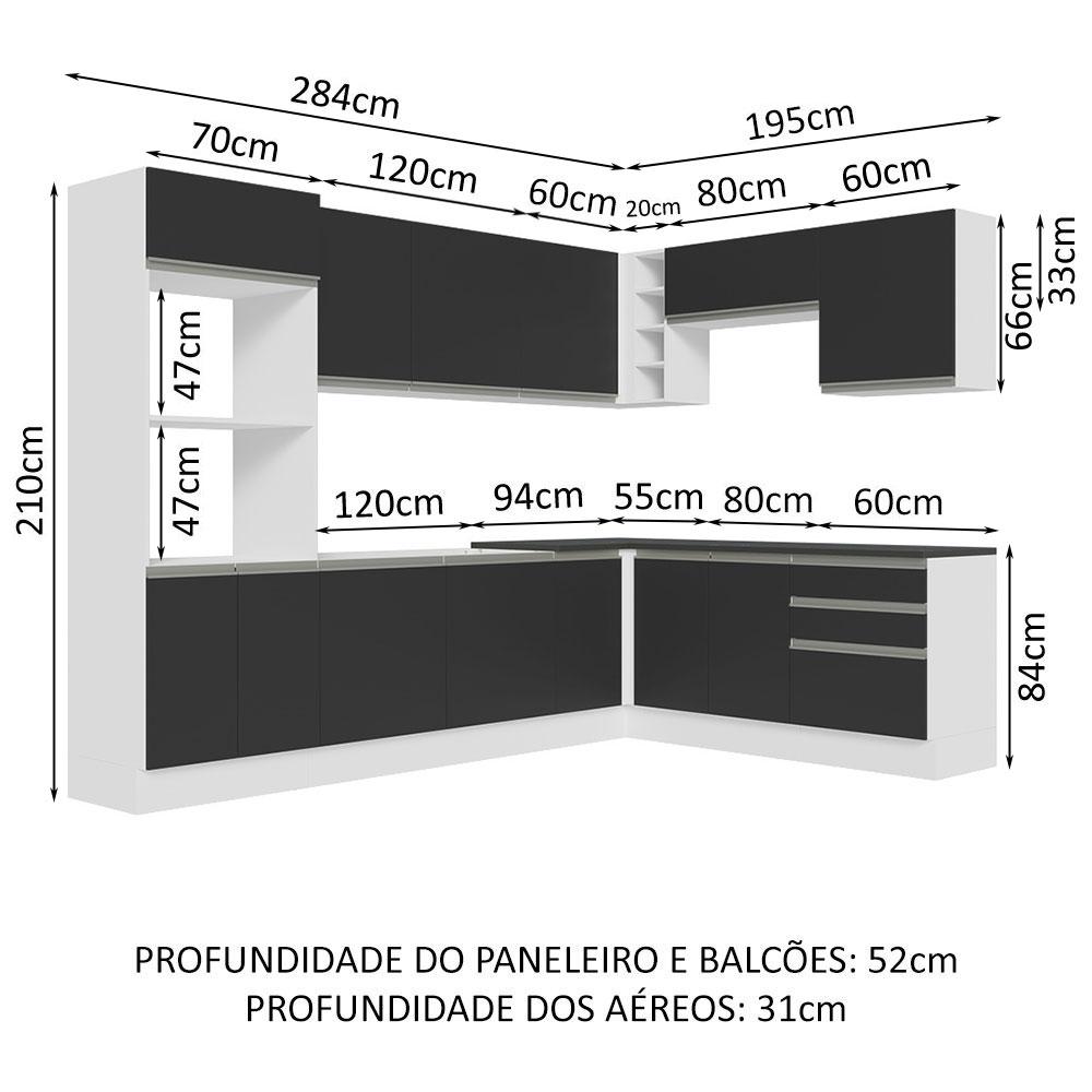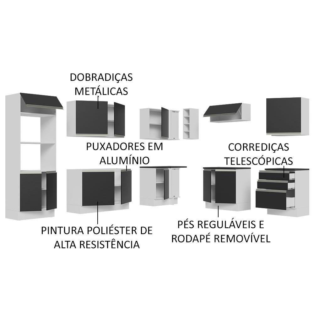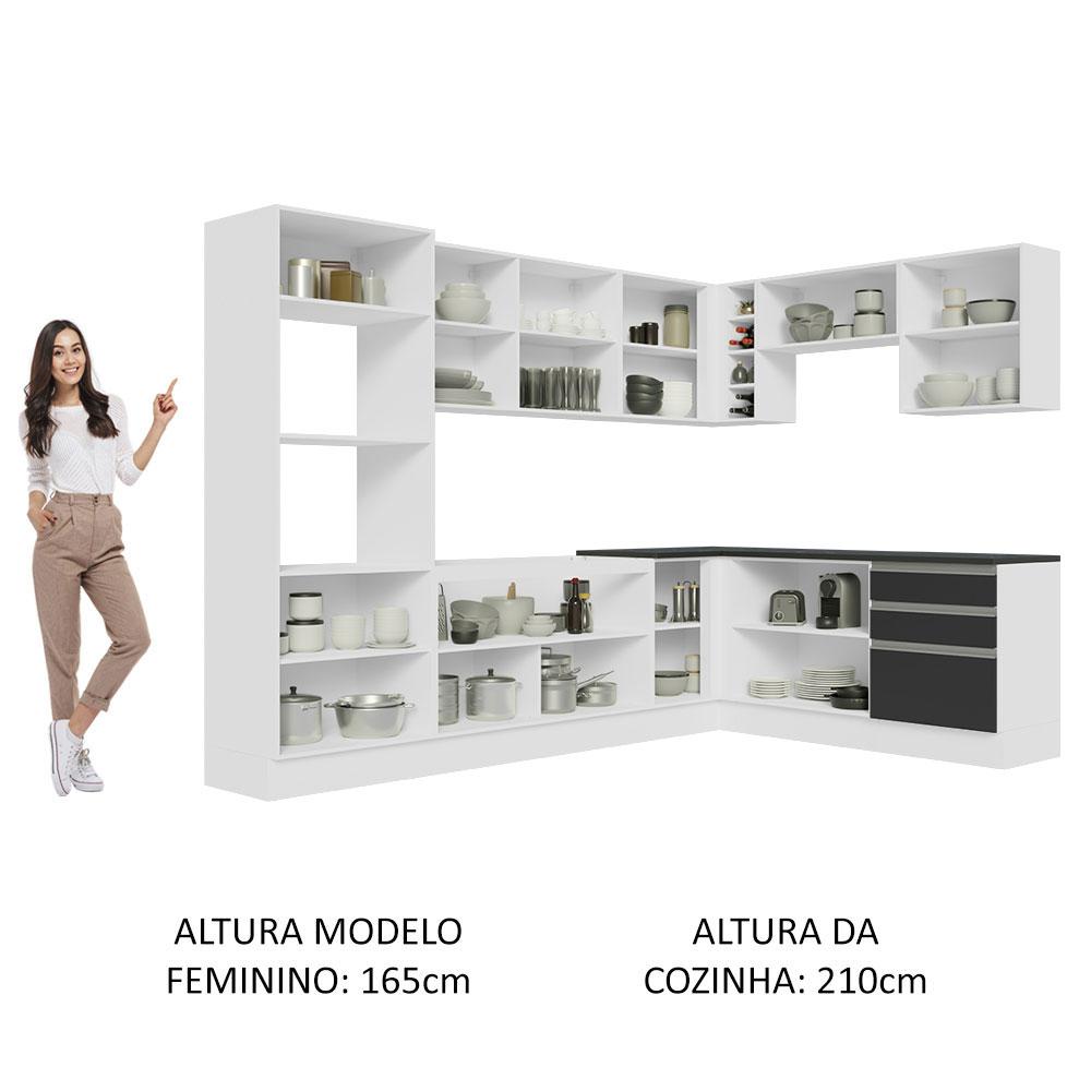 Armário de Cozinha Completa de Canto 100% MDF 479cm Branco/Preto Acordes Madesa 03