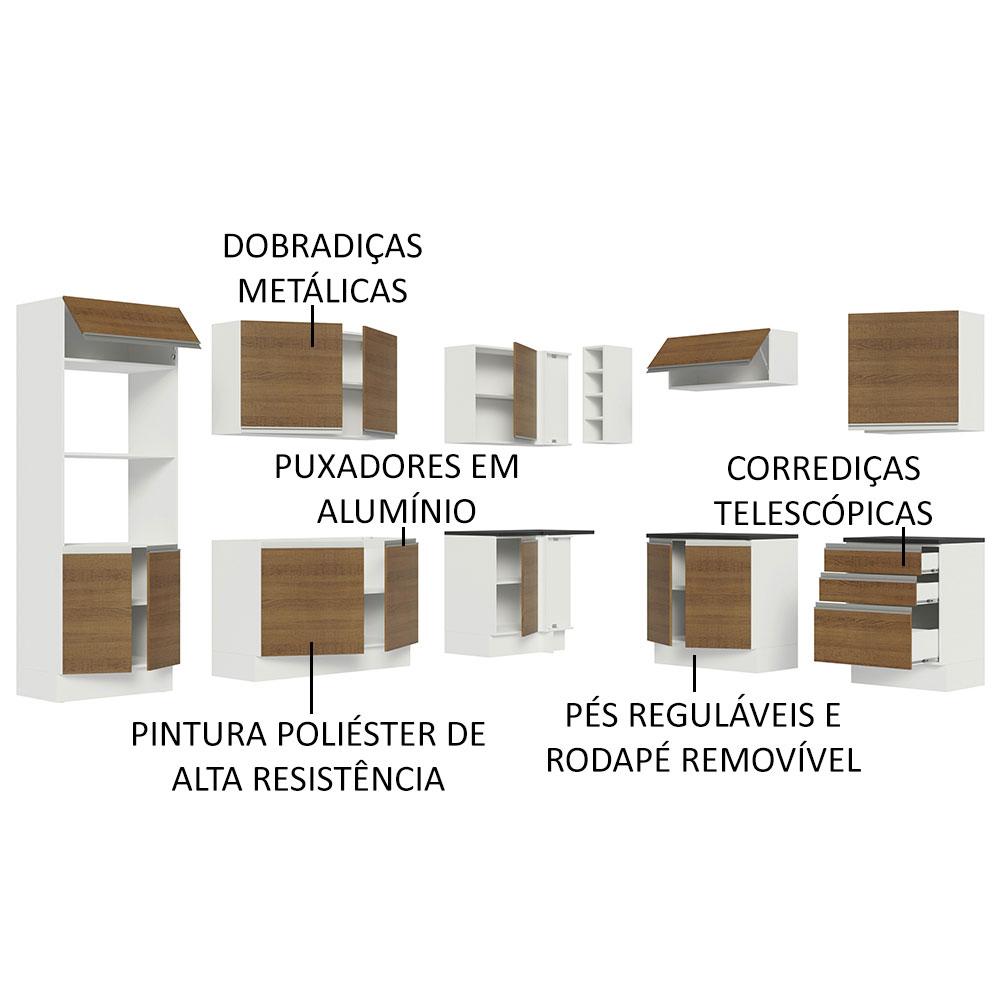 Cozinha Completa de Canto 100% MDF Madesa Acordes 479003 Armário e Balcão - Branco/Rustic