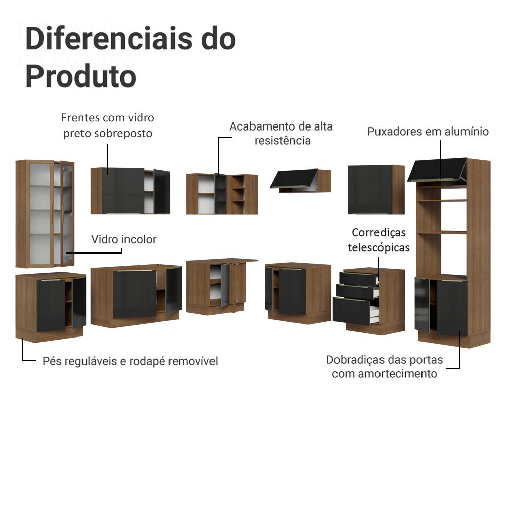 Armário de Cozinha Completa 566cm Rustic/Preto Lux Madesa 01