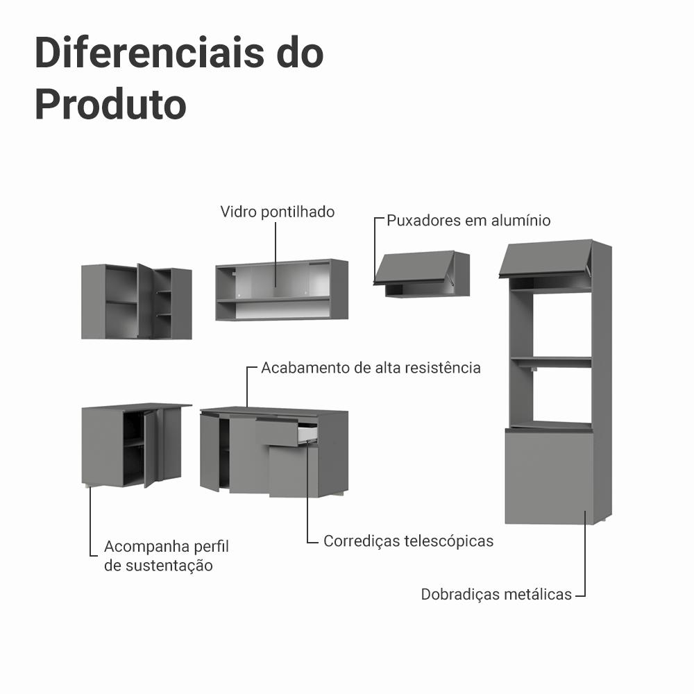 Armário de Cozinha Completa de Canto Suspenso 385cm Cinza Nice Madesa 01