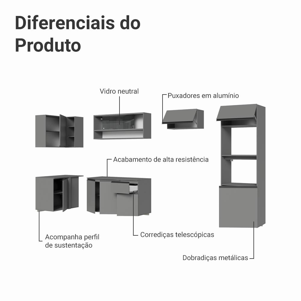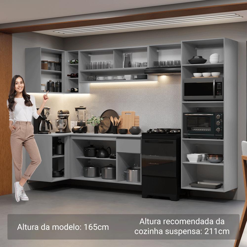 Armário de Cozinha Completa de Canto Suspenso 385cm Cinza Nice Madesa 02