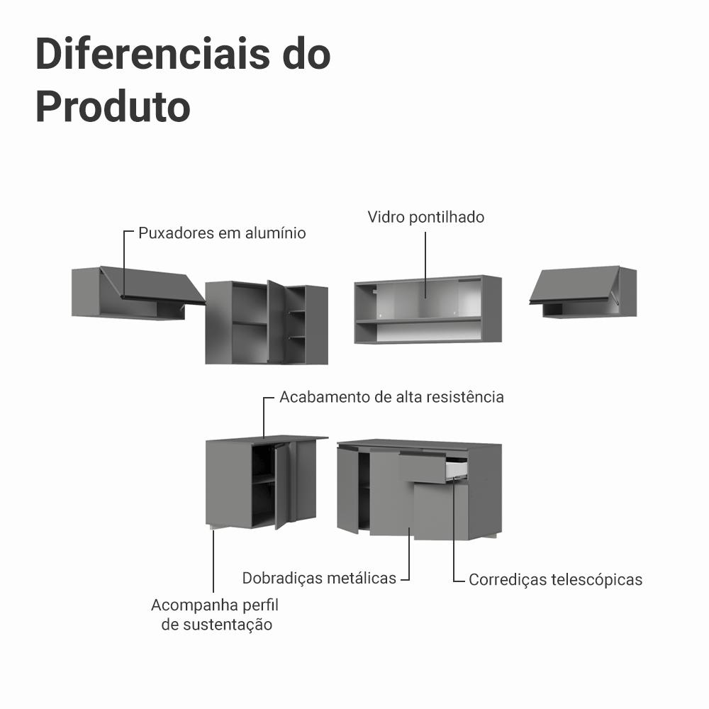 Armário de Cozinha Completa de Canto Suspenso 405cm Cinza Nice Madesa 03