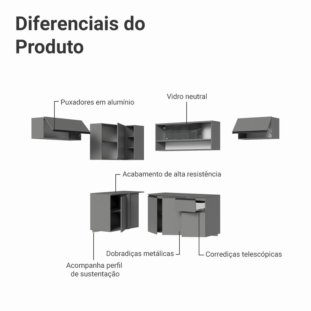 Armário de Cozinha Completa de Canto Suspenso 405cm Cinza Nice Madesa 04