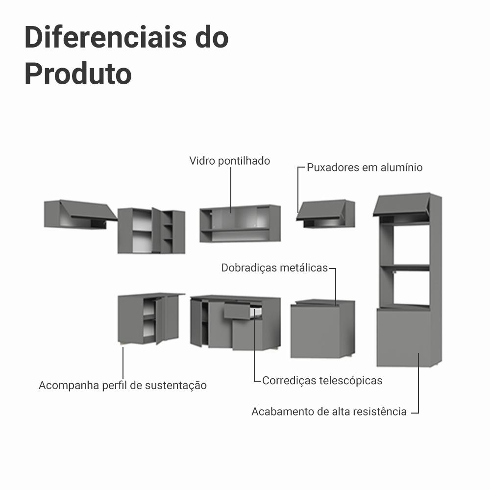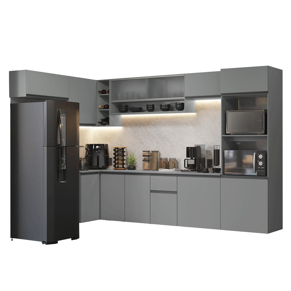 Armário de Cozinha Completa de Canto Suspenso 465cm Cinza Nice Madesa 02