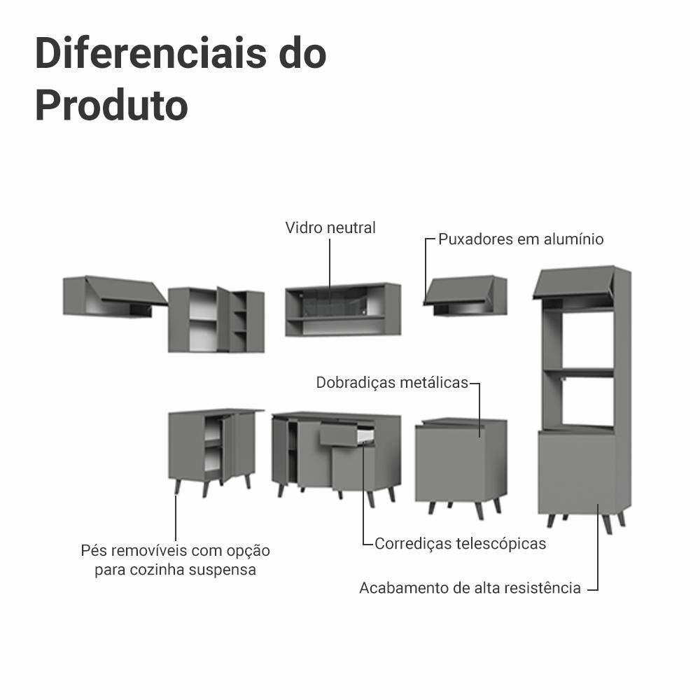 Armário de Cozinha Completa de Canto 465cm Cinza Nice Madesa 05