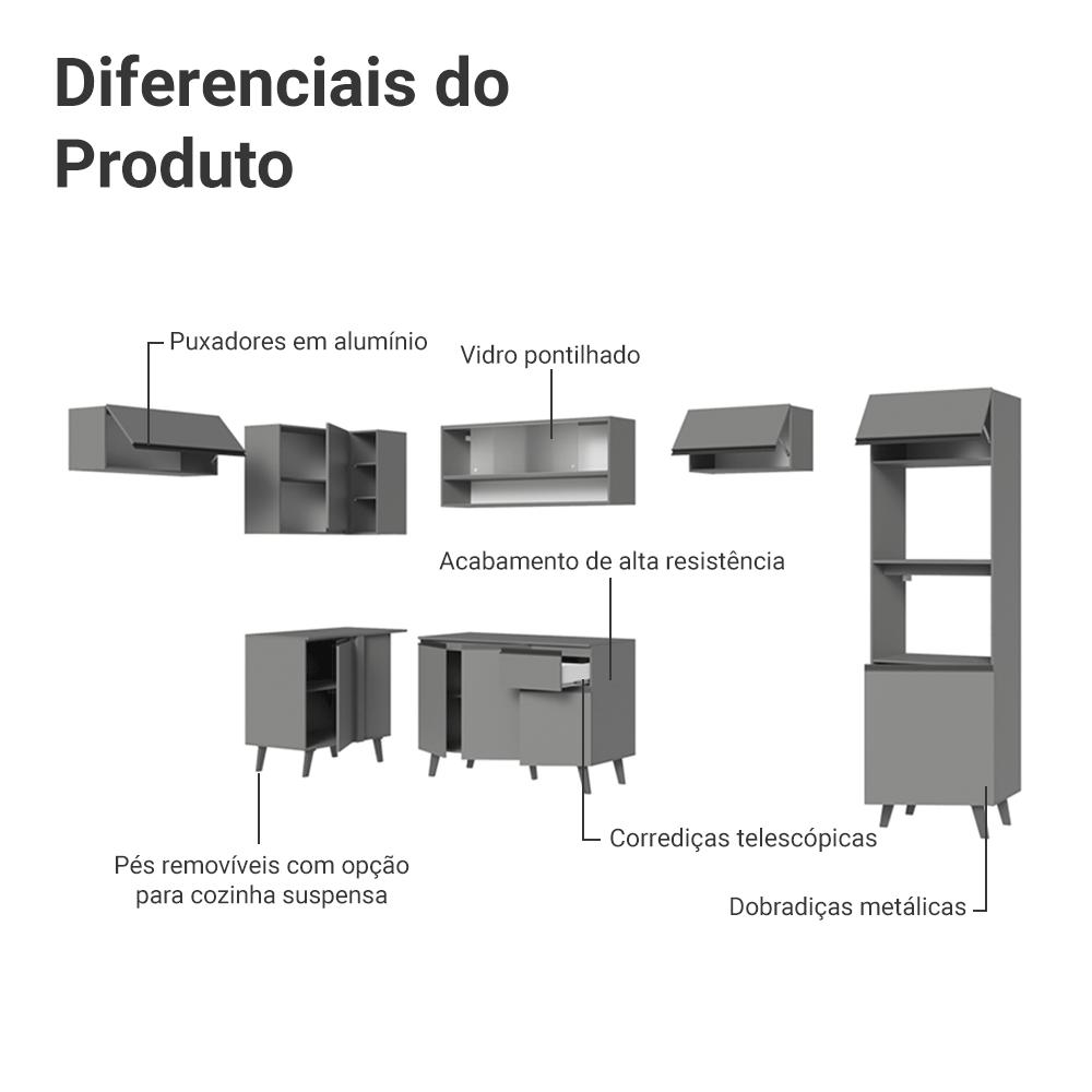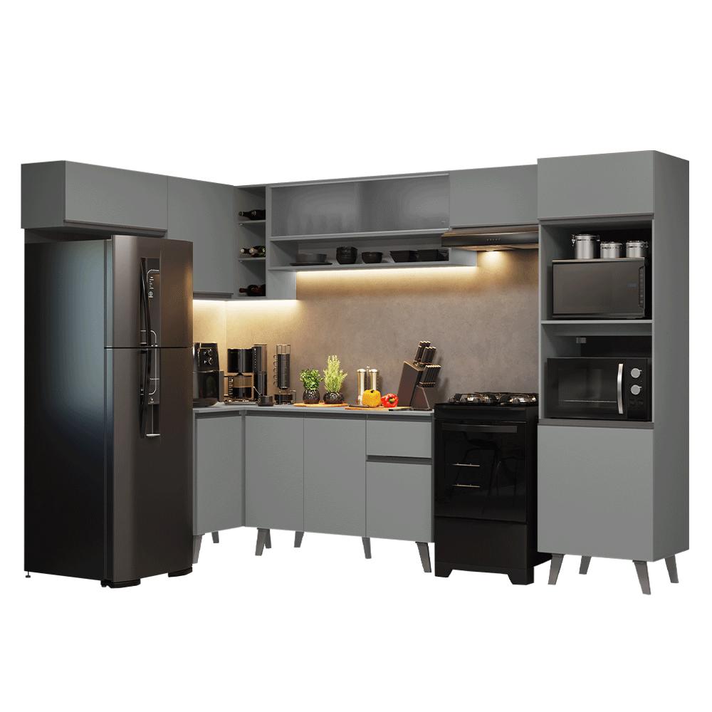 Armário de Cozinha Completa de Canto 465cm Cinza Nice Madesa 08