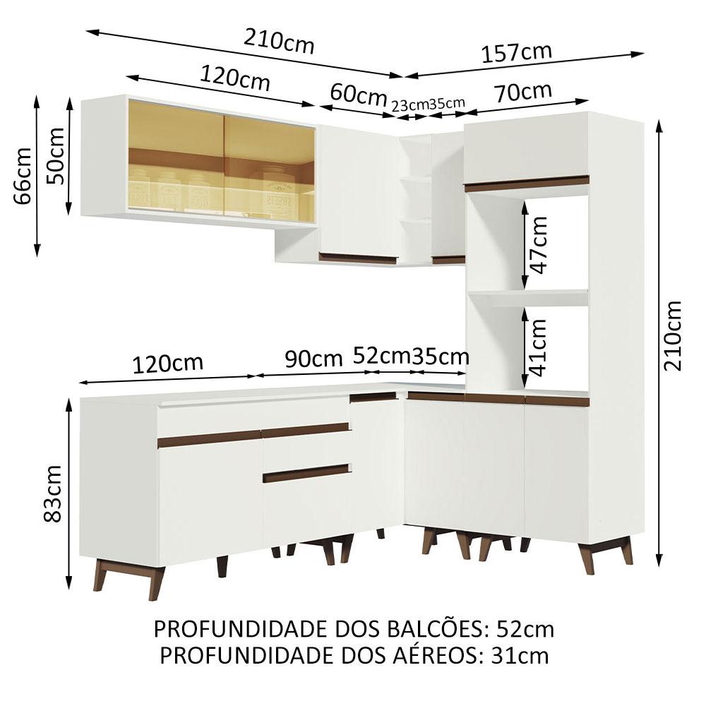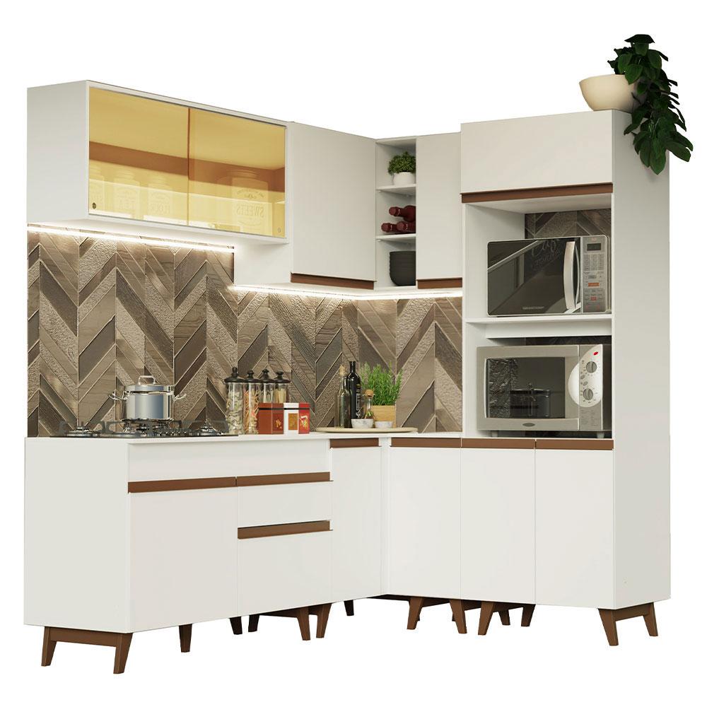 Cozinha Completa de Canto Madesa Reims 367001 com Armário e Balcão - Branco