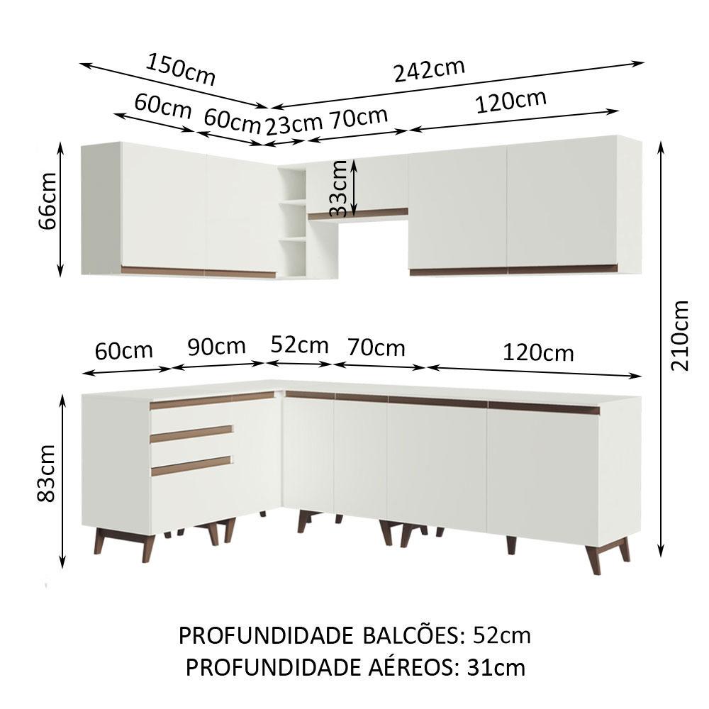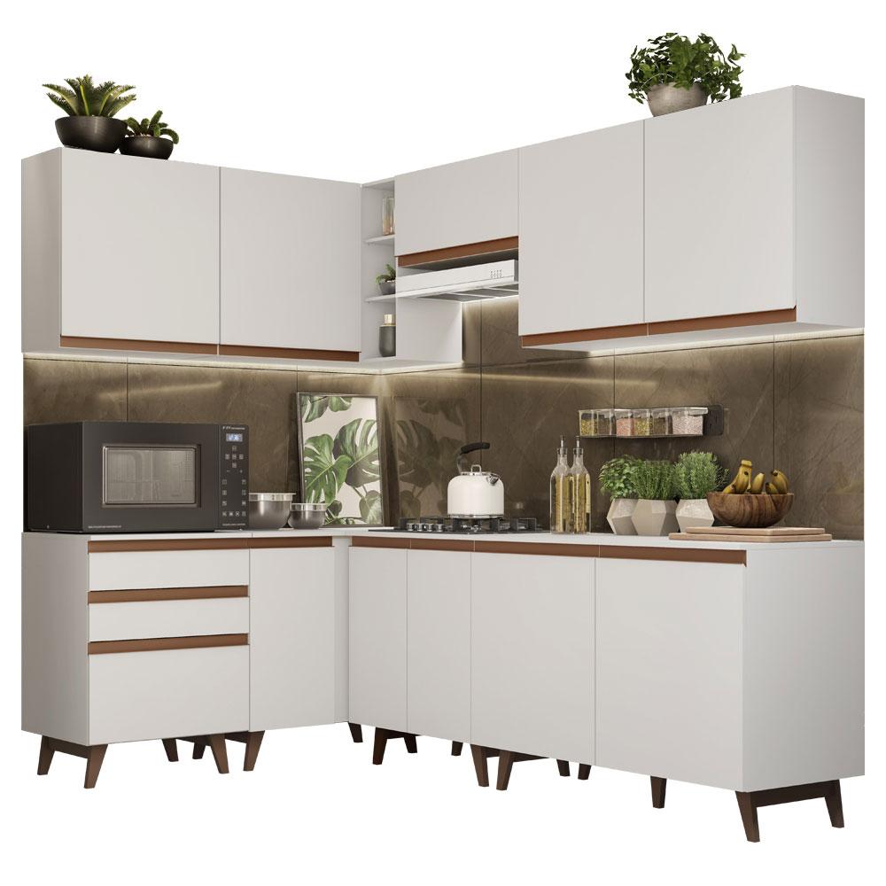 Cozinha Completa de Canto Madesa Reims 392002 com Armário e Balcão - Branco