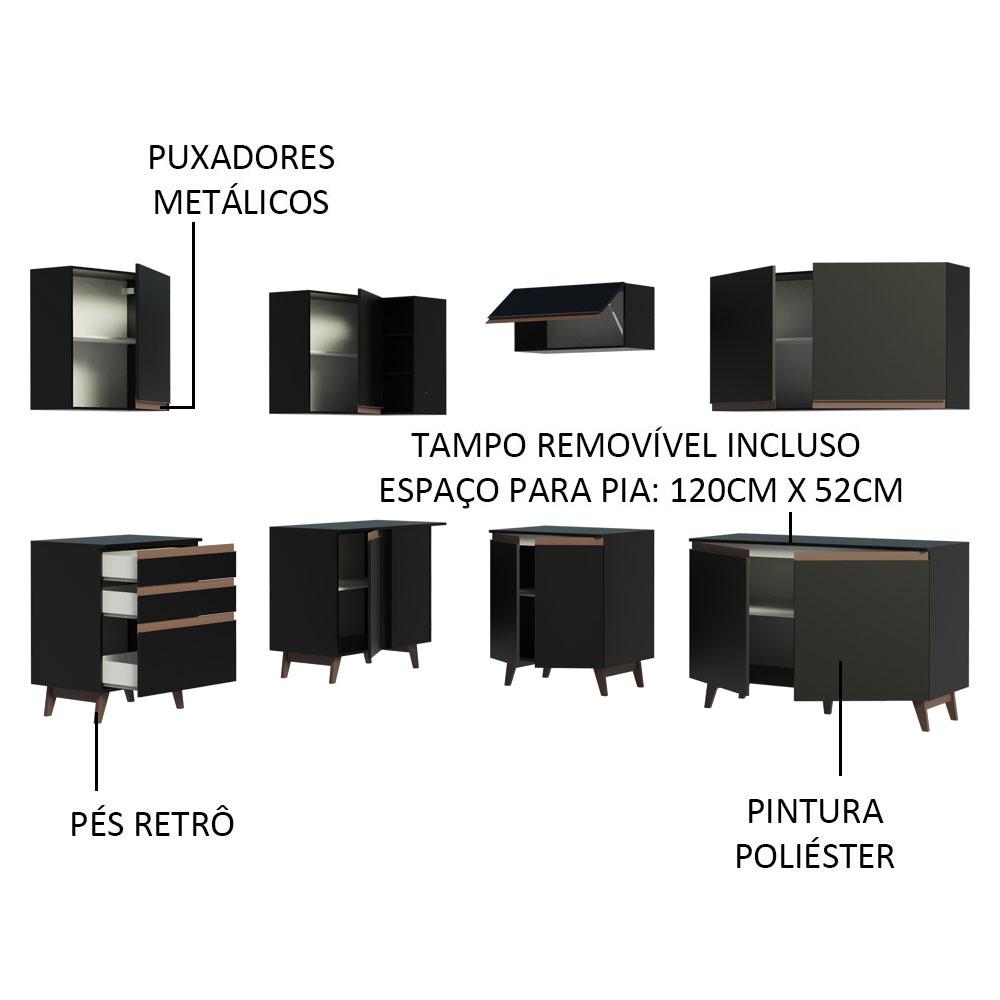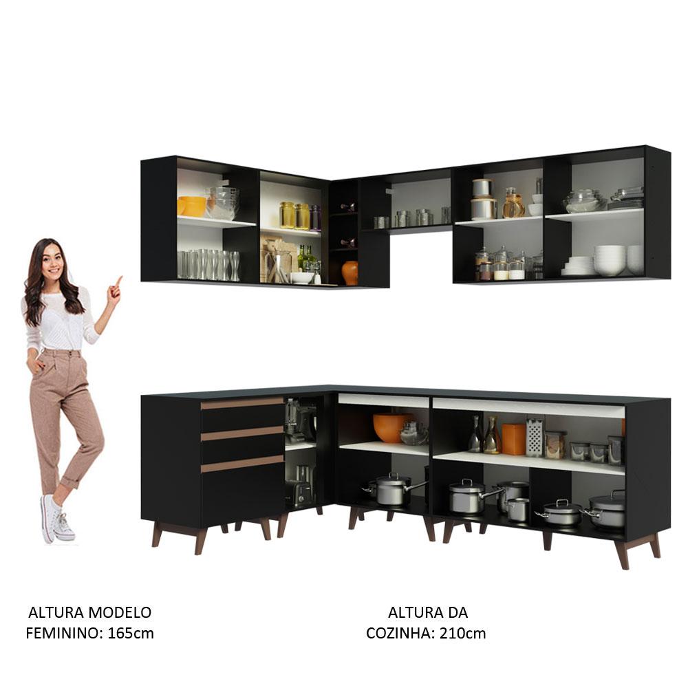 Cozinha Completa de Canto Madesa Reims 392002 com Armário e Balcão - Preto