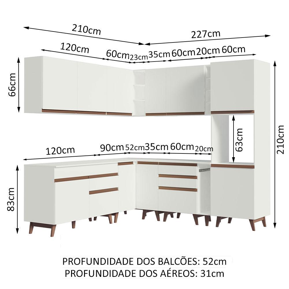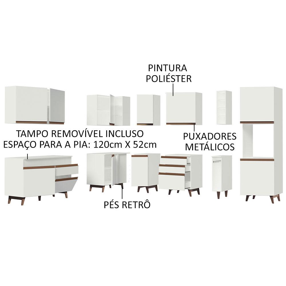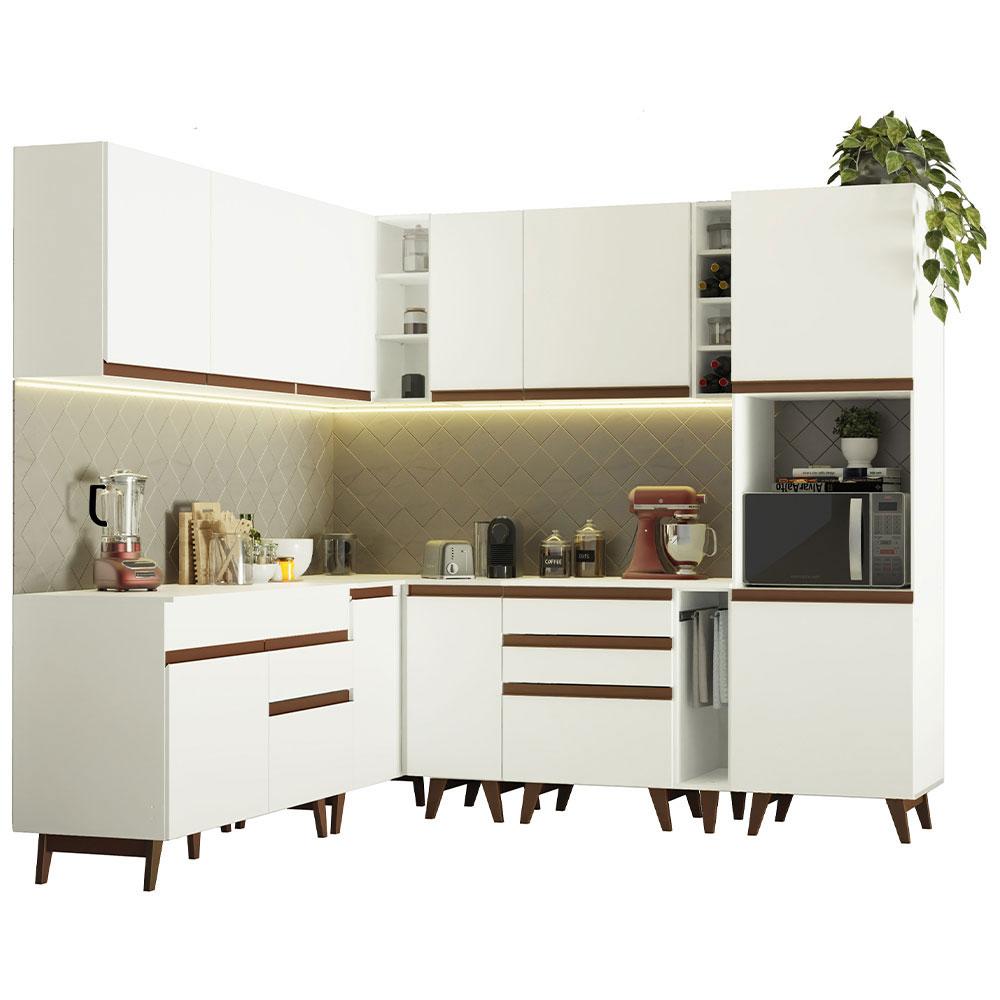 Cozinha Completa de Canto Madesa Reims 437001 com Armário e Balcão - Branco