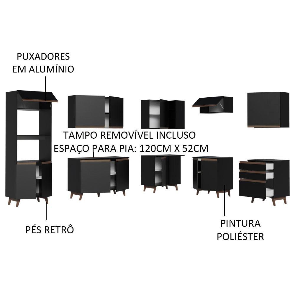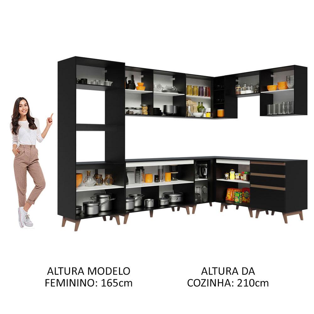Cozinha Completa de Canto Madesa Reims 462001 com Armário e Balcão - Preto