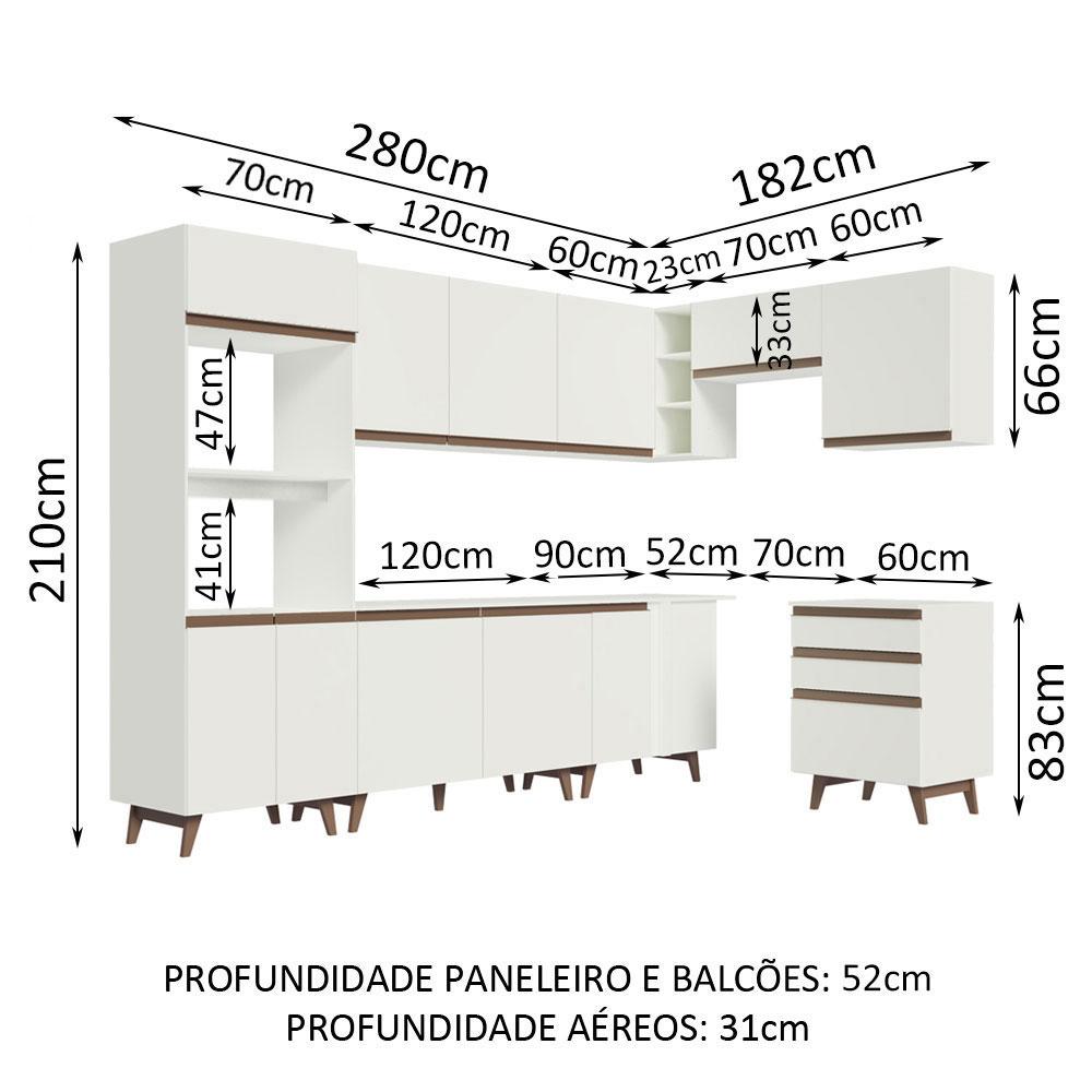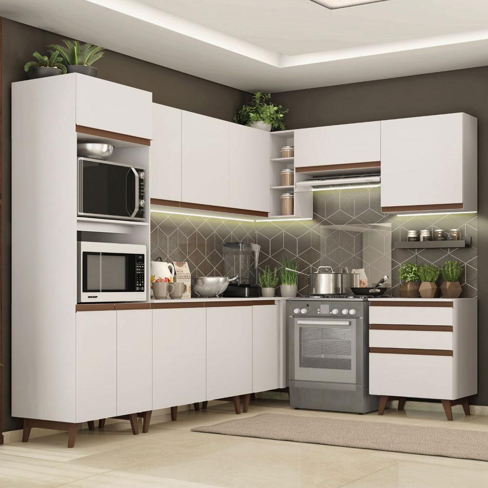 Cozinha Completa de Canto Madesa Reims 462002 com Armário e Balcão - Branco