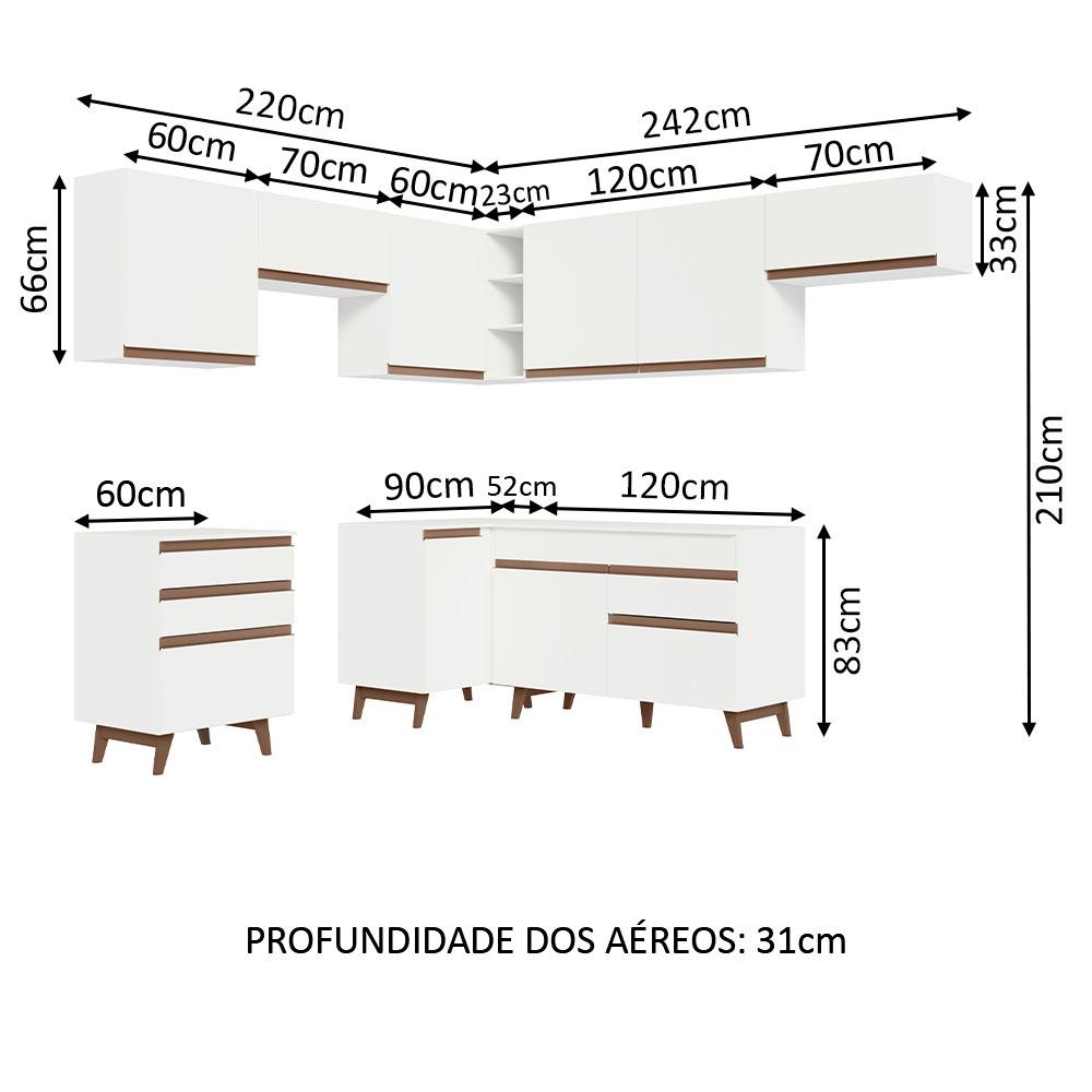 Armário de Cozinha Completa de Canto 462cm Branco Reims Madesa 03