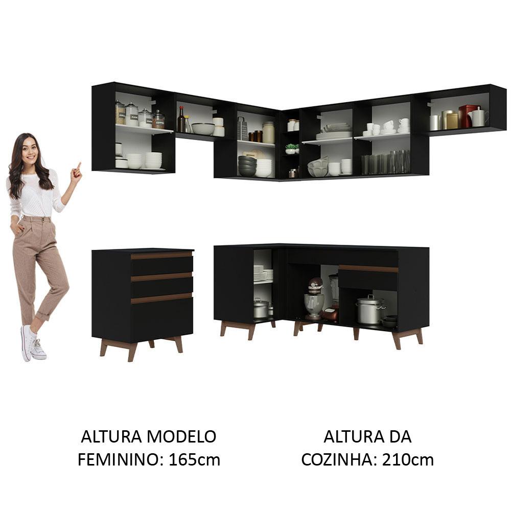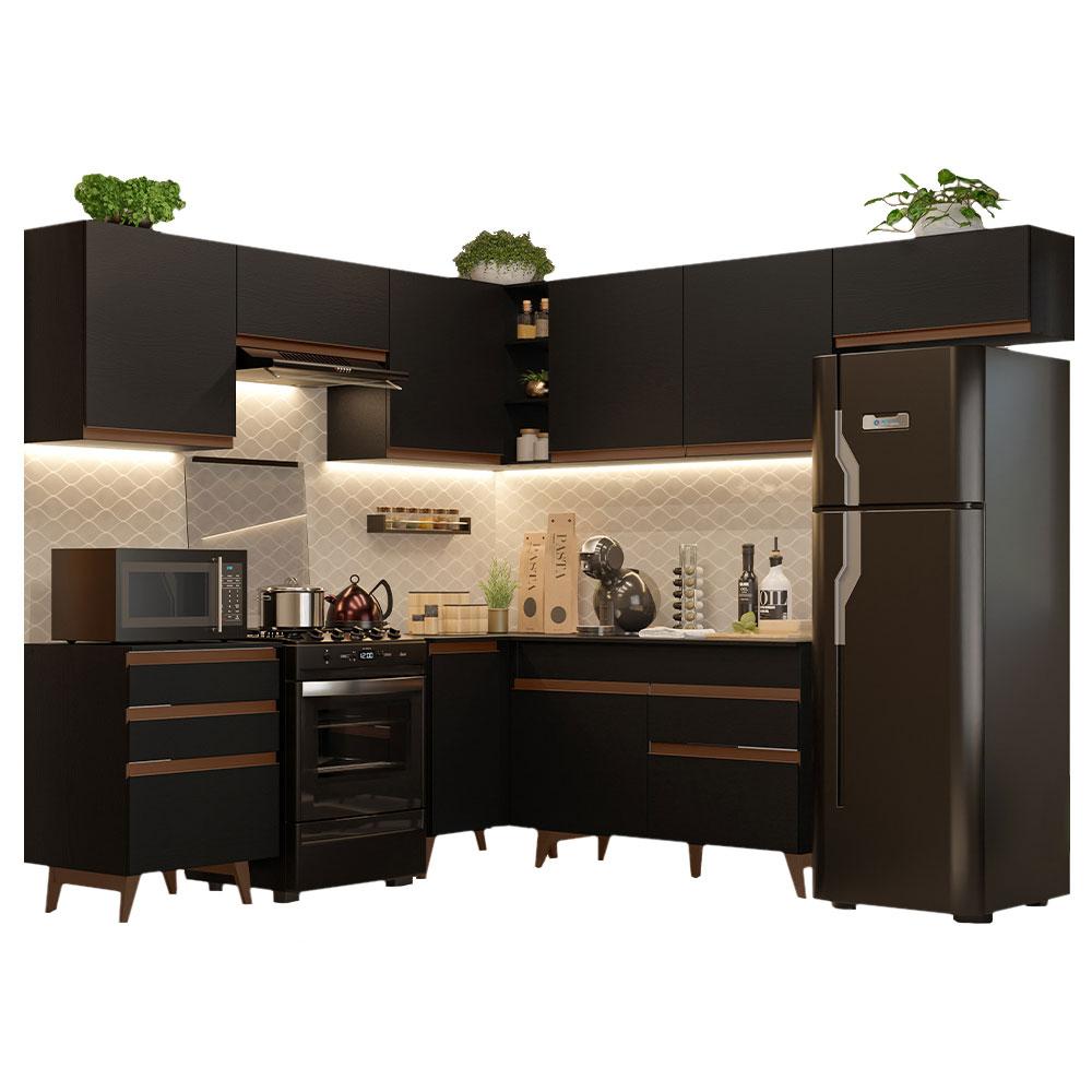 Armário de Cozinha Completa de Canto 462cm Preto Reims Madesa 03
