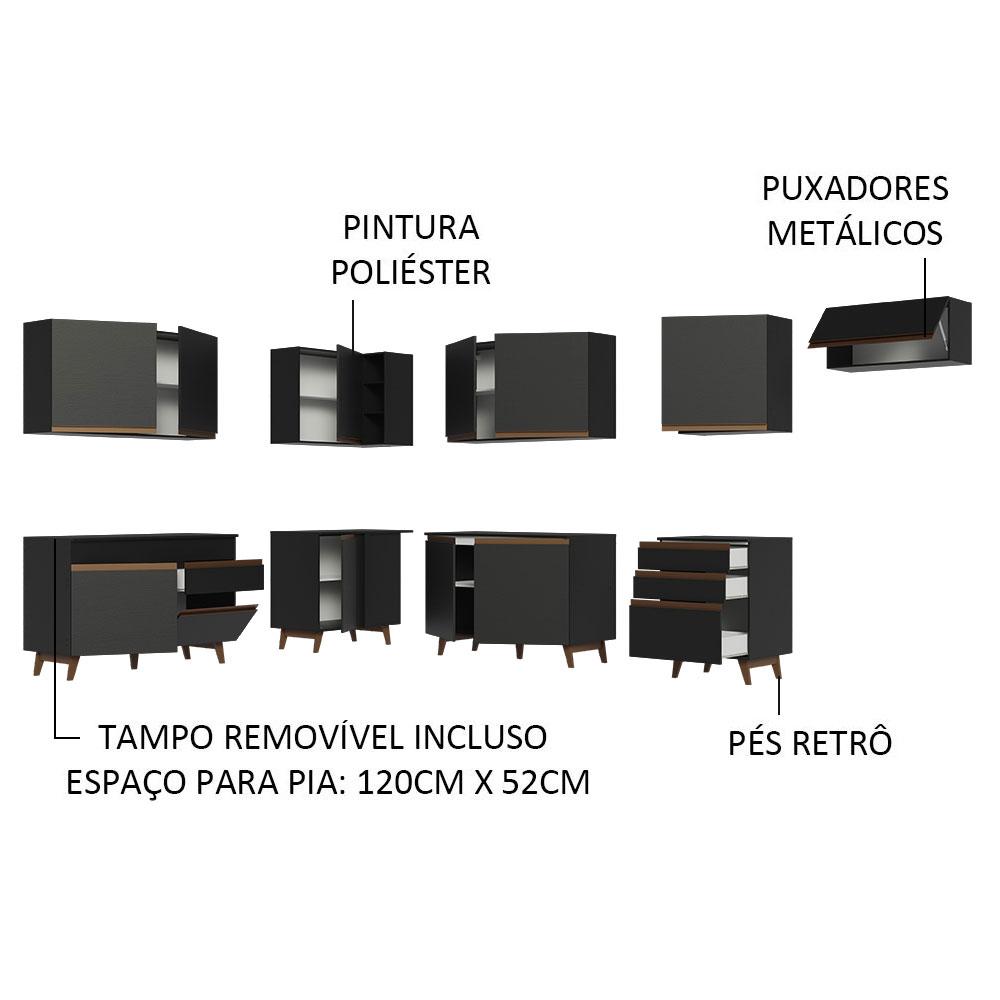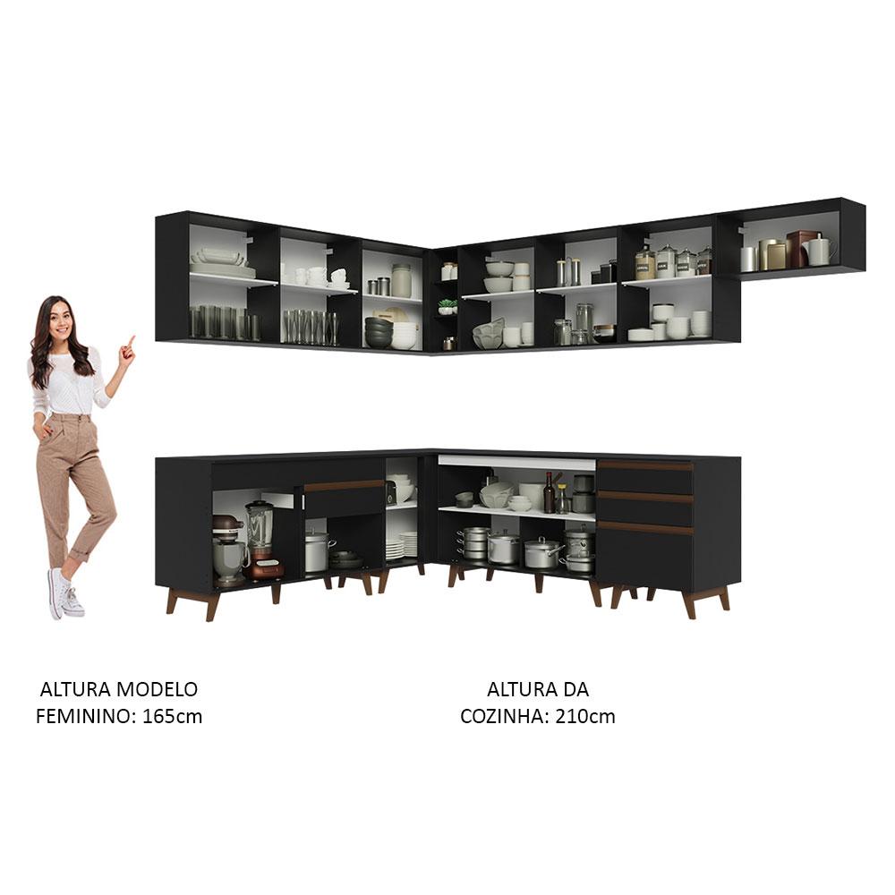 Armário de Cozinha Completa de Canto 512cm Preto Reims Madesa 01