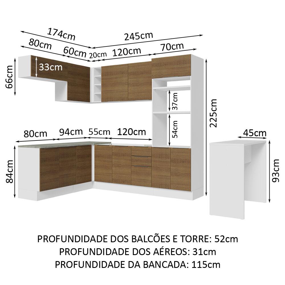 Armário de Cozinha Completa de Canto 489cm Branco/Rustic Stella Madesa