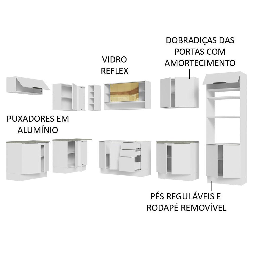Armário de Cozinha Completa de Canto 499cm Branco Stella Madesa 02
