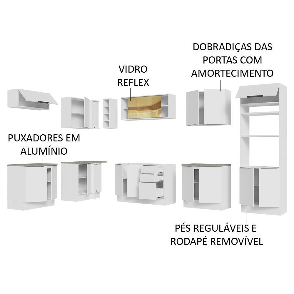 Armário de Cozinha Completa de Canto 499cm Branco Stella Madesa 03