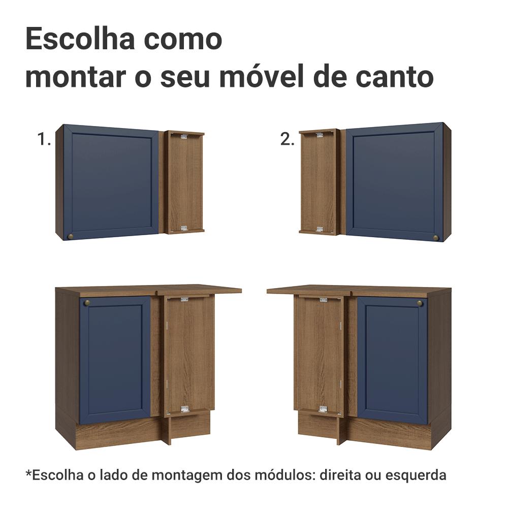 Armário de Cozinha Completa de Canto 399 cm Rustic/Azul Vik Madesa 02