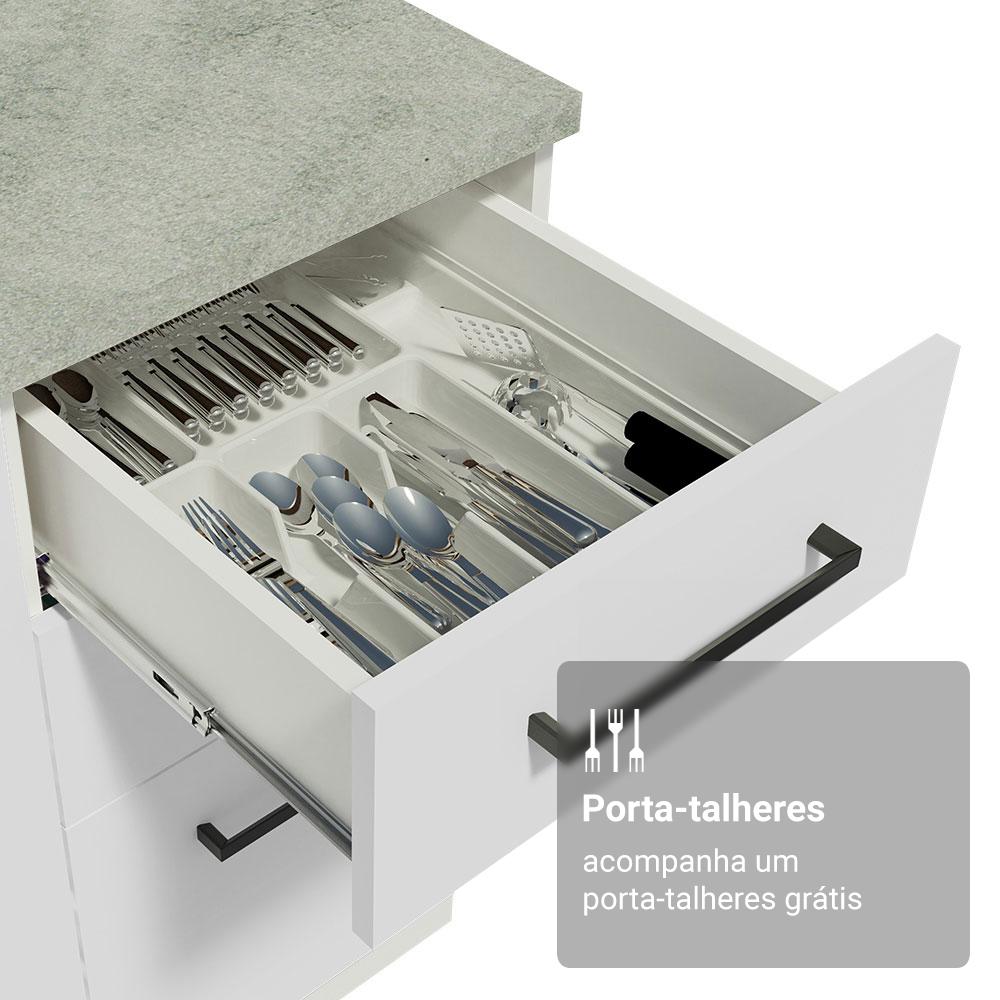 Este Armário de Cozinha Completa da linha Agata da Madesa é moderno e funcional.O móvel conta com puxadores com alça em alumínio, gavetas com corrediças telescópicas de abertura total, portas com amortecimento para fechamento suave e pés reguláveis em PVC.O grande diferencial deste modelo é a cristaleira. Super sofisticada, possui duas portas de vidro e muito espaço disponível para organizar louças, copos e demais objetos.A cozinha ainda conta com diversas gavetas, prateleiras e nichos. Assim, fica mais fácil fazer a organização de todos os utensílios. Além disso, o balcão acompanha tampo, que pode ser removido para instalação de pia de inox ou pedra, nas medidas de 120 x 52 cm.Esta cozinha é planejada, composta por módulos avulsos que podem ser organizados conforme o espaço do seu ambiente. Também pode ser posteriormente complementada pelos módulos da linha Agata da Madesa.E para completar, o acabamento é branco.Medidas totais:- 225 cm de altura- 190 cm de largura- 52 cm de profundidade nos balcões e 31 cm no aéreo e na cristaleiraItens inclusos:- Uma (1) Cristaleira de 70 cm com duas (2) portas- Um (1) Balcão de 70 cm com duas (2) portas e tampo- Um (1) Aéreo de 120 cm com duas (2) portas- Um (1) Balcão de 120 cm com duas (2) portas, três (3) gavetas e tampoCódigo do produto: GRAG19000109Obs.:- A cristaleira não acompanha pés nem kit para suspender na parede. Deve ser instalada sobre o balcão e fixada na parede.- As imagens são meramente ilustrativas, os eletros e a decoração não acompanham o produto