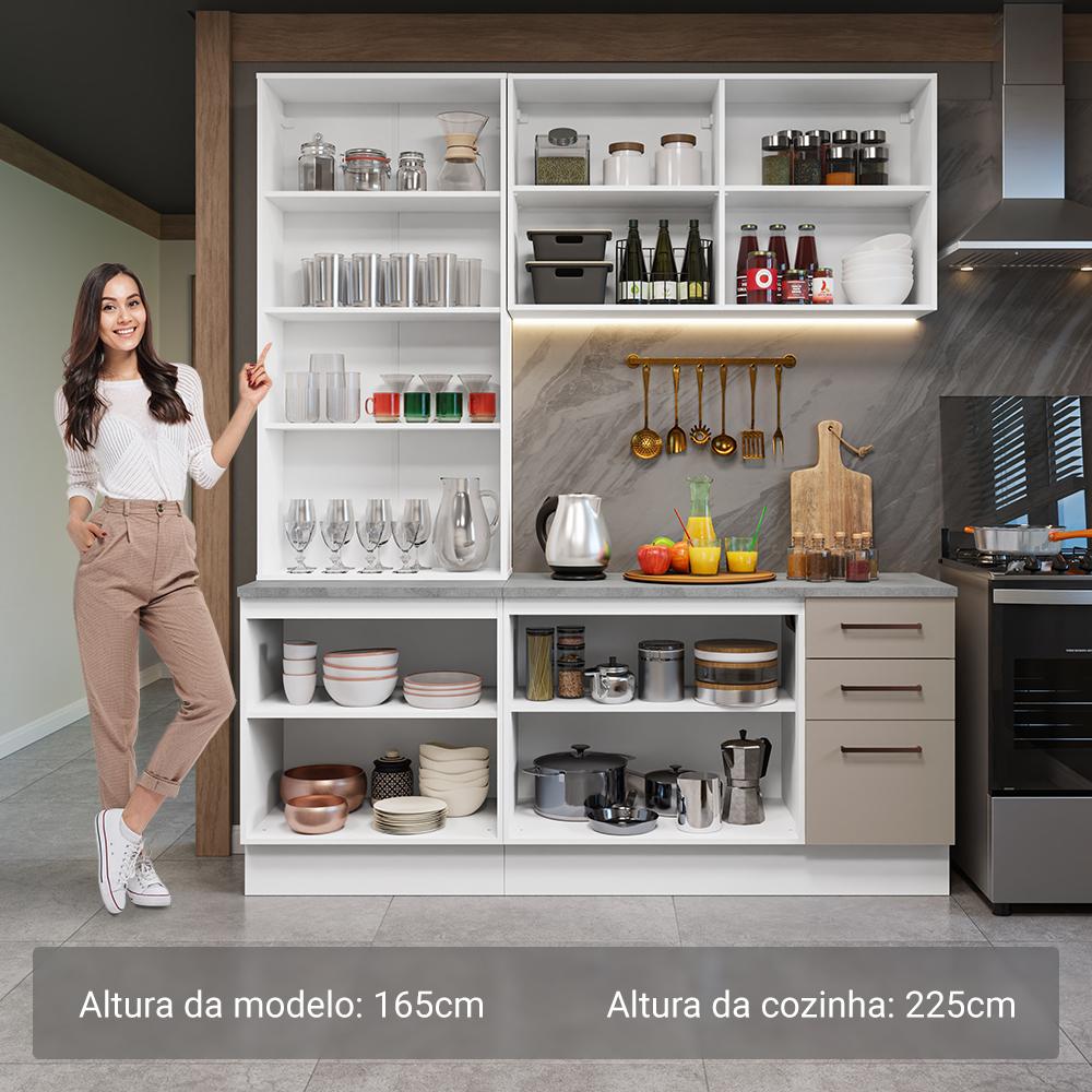 Armário de Cozinha Compacta 190cm com Cristaleira Branco/Crema Agata Madesa 01