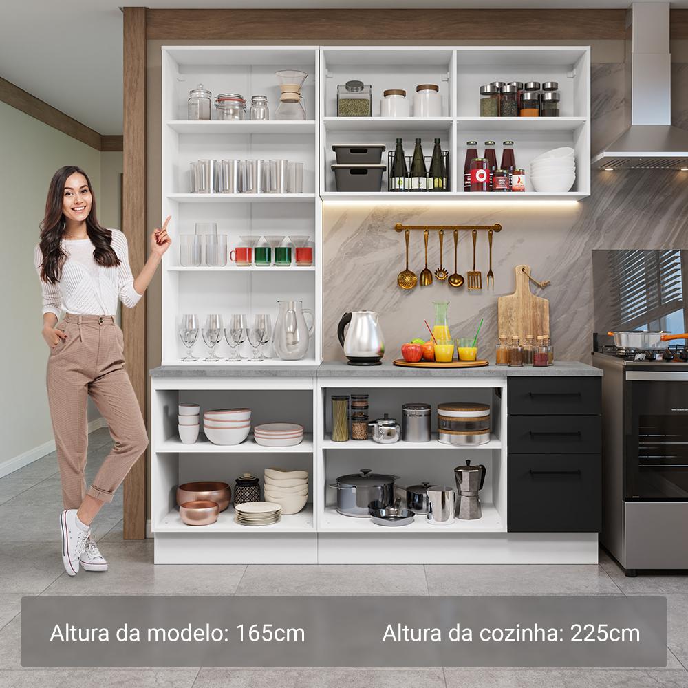 Armário de Cozinha Compacta 190cm com Cristaleira Branco/Preto Agata Madesa 01