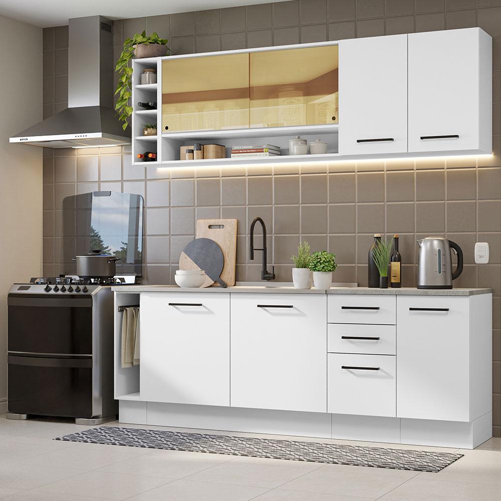 Armário de Cozinha Completa 220cm Branco Agata da Thêmis Madesa