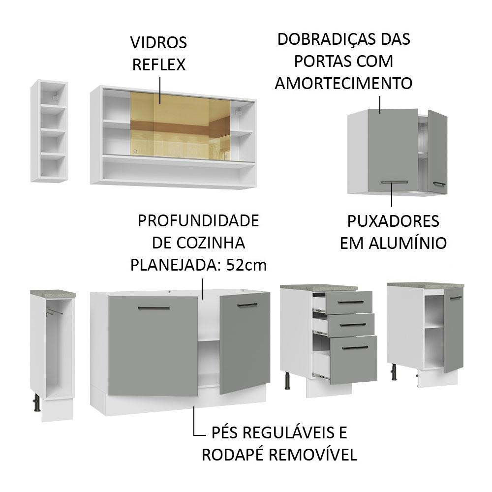 Armário de Cozinha Completa 220cm Branco/Cinza Agata da Thêmis Madesa