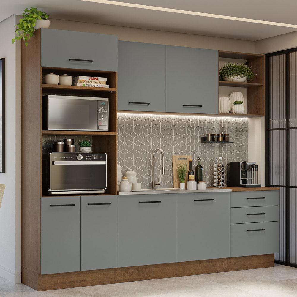 Armário de Cozinha Completa 250cm Rustic/Cinza Agata Madesa 01