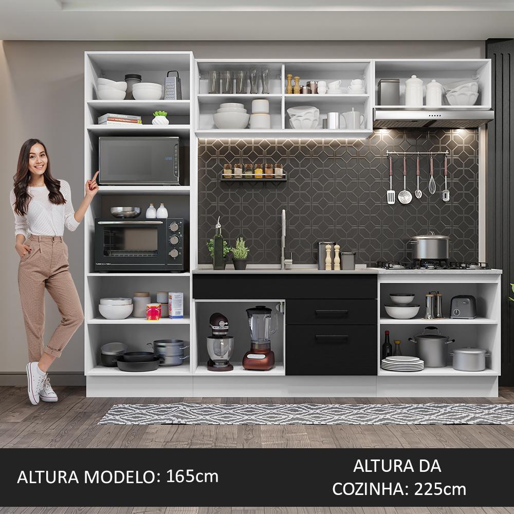 Cozinha Completa Madesa Agata 270003 com Armário e Balcão (Sem Tampo e Pia) - Branco/Preto