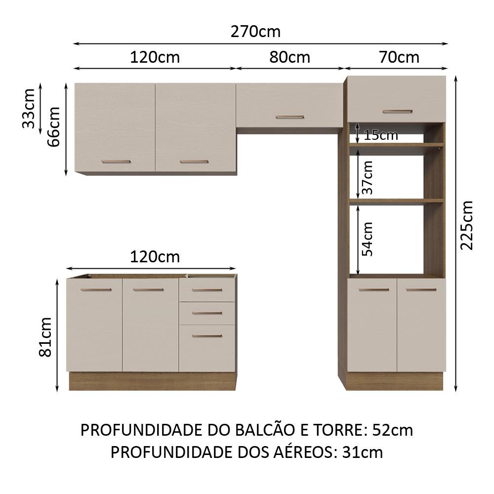 Armário de Cozinha Completa 270cm Rustic/Crema Agata Madesa 08