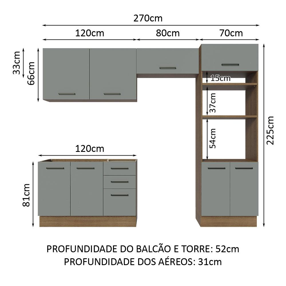 Armário de Cozinha Completa 270cm Rustic/Cinza Agata Madesa 08