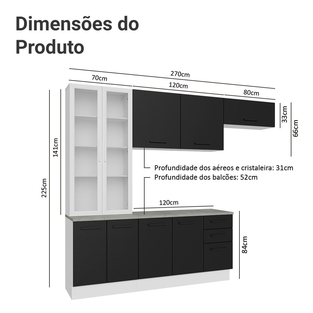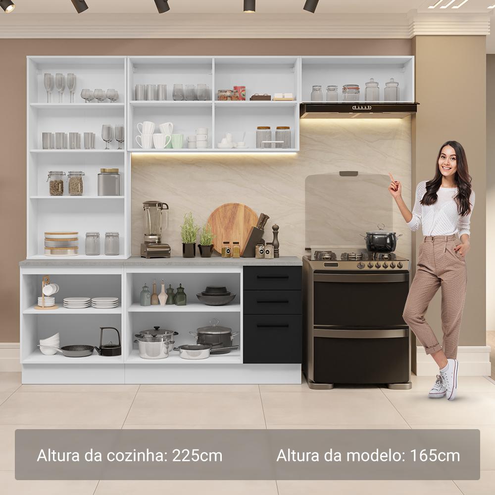 Armário de Cozinha Completa 270cm Branco/Preto Agata Madesa 11