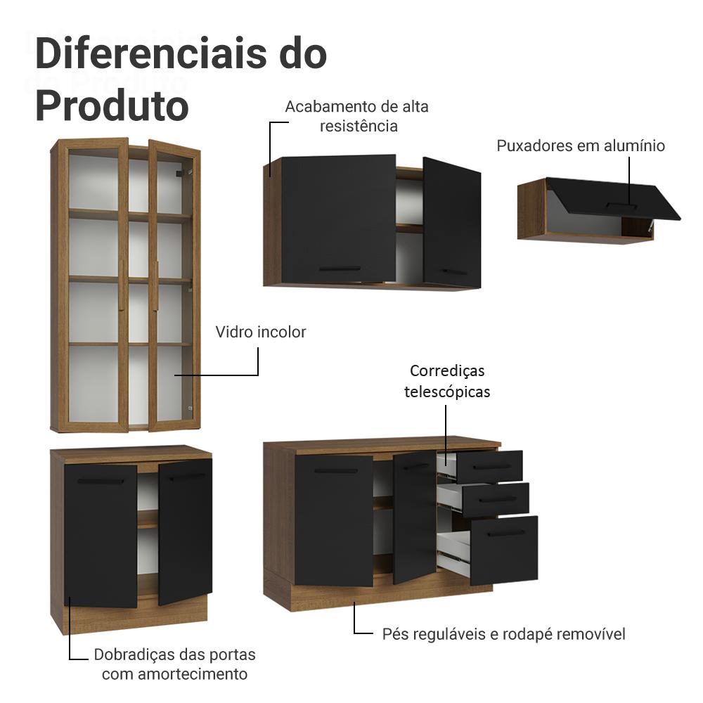 Armário de Cozinha Completa 270cm Rustic/Preto Agata Madesa 11