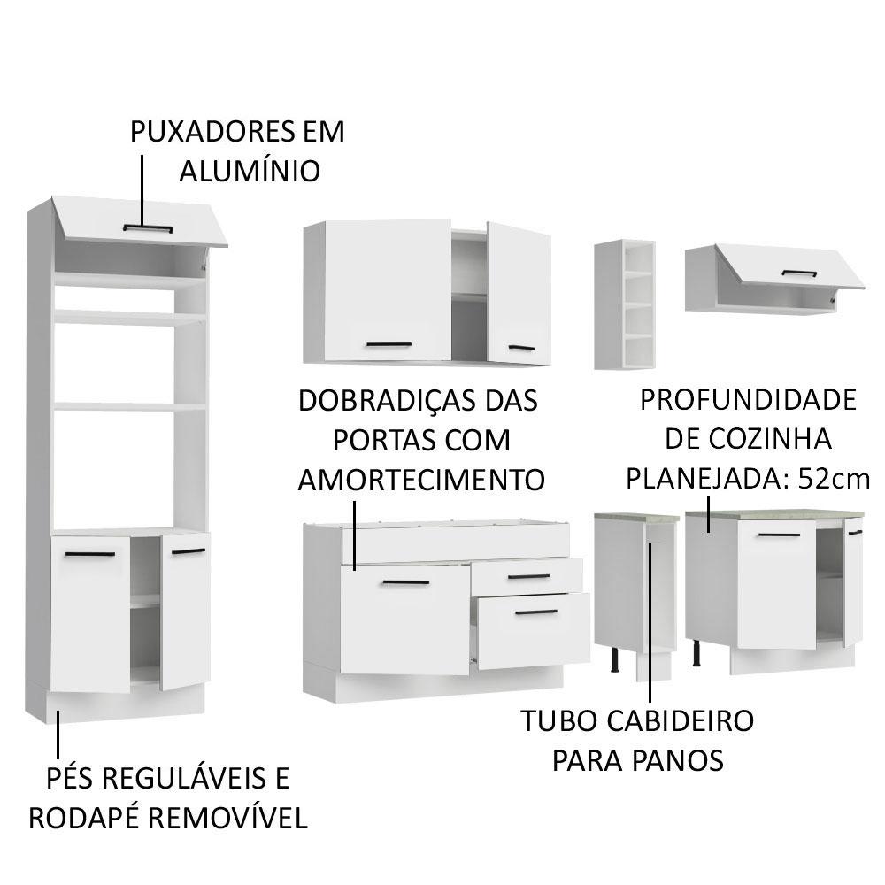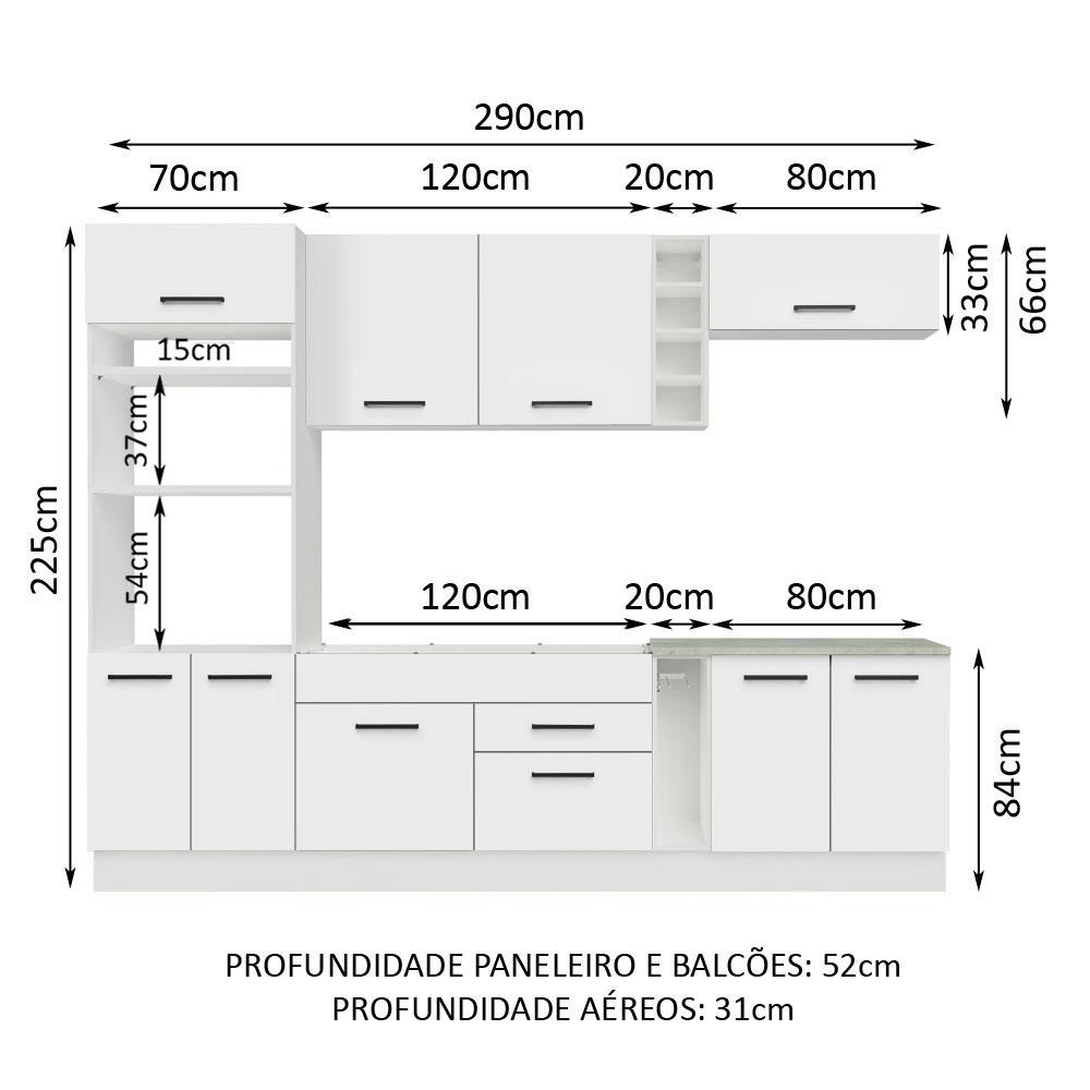 Armário de Cozinha Completa 290cm Branco Agata Madesa 01
