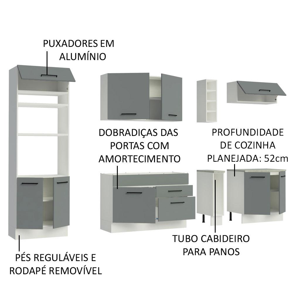 Armário de Cozinha Completa 290cm Branco/Cinza Agata Madesa 01