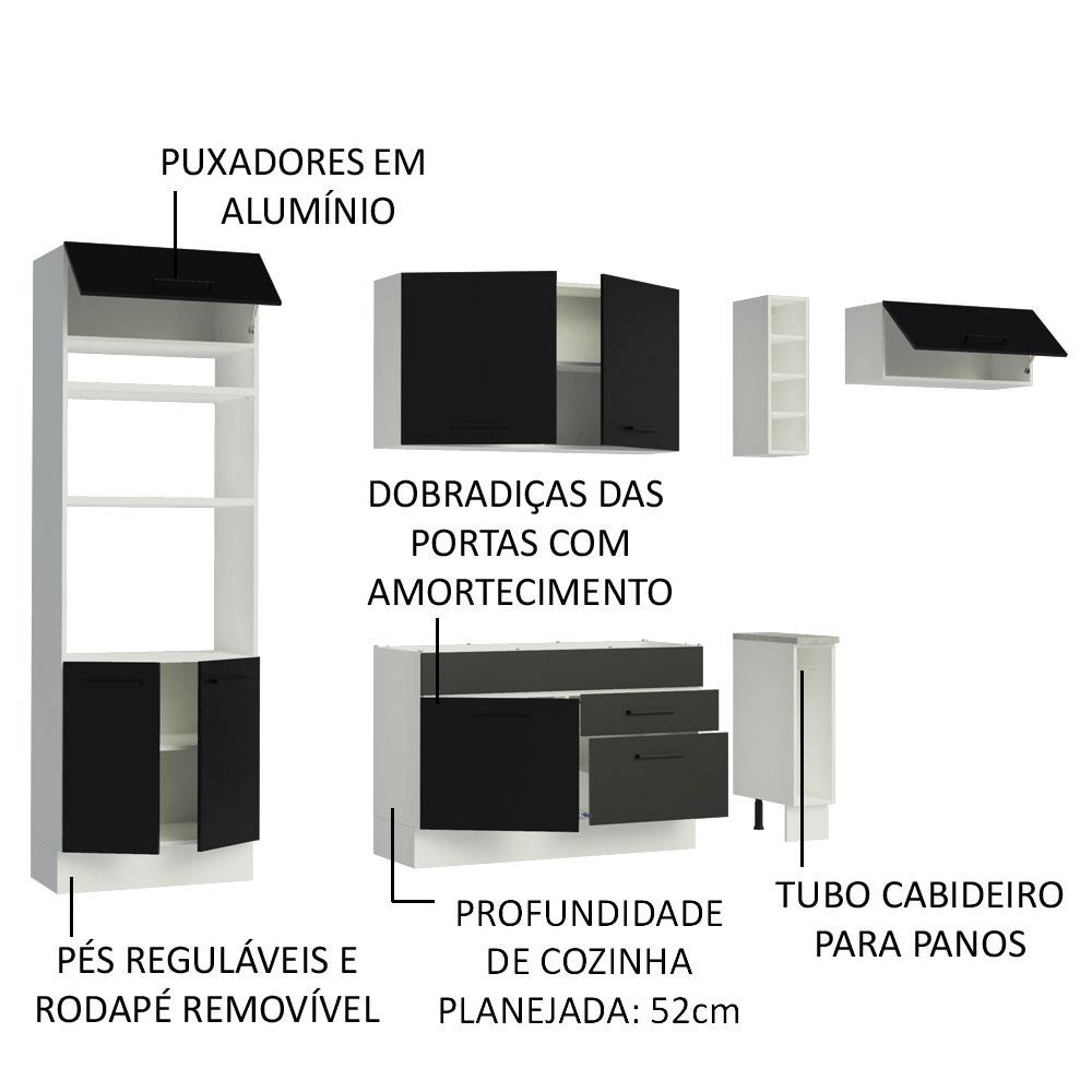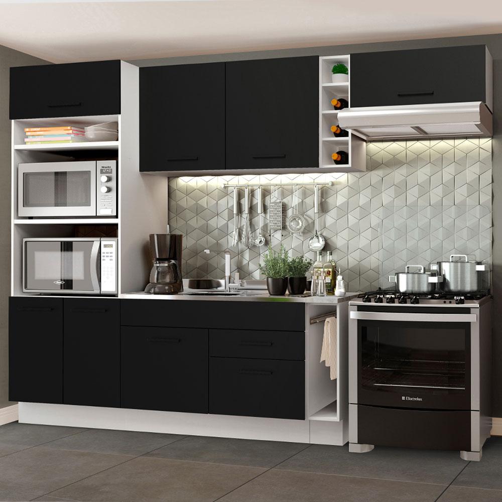 Cozinha Completa Madesa Agata 290002 com Armário e Balcão (Sem Tampo e Pia) - Branco/Preto