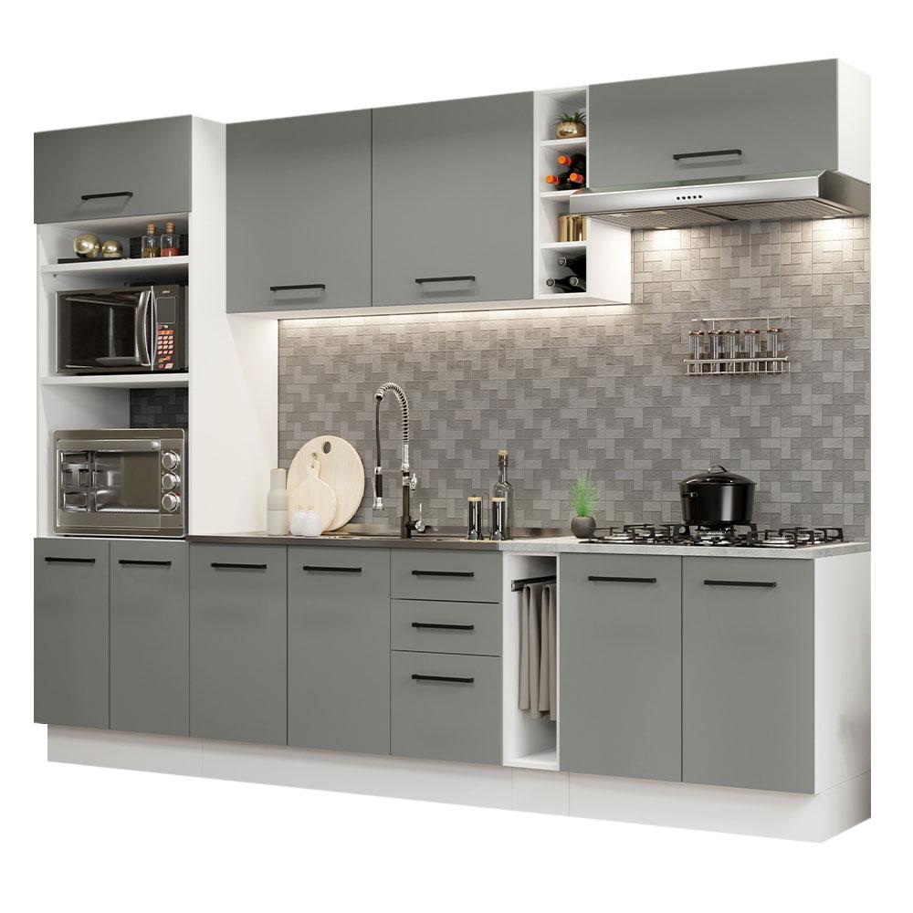 Cozinha Completa Madesa Agata 290005 com Armário e Balcão (Sem Tampo) - Branco/Cinza
