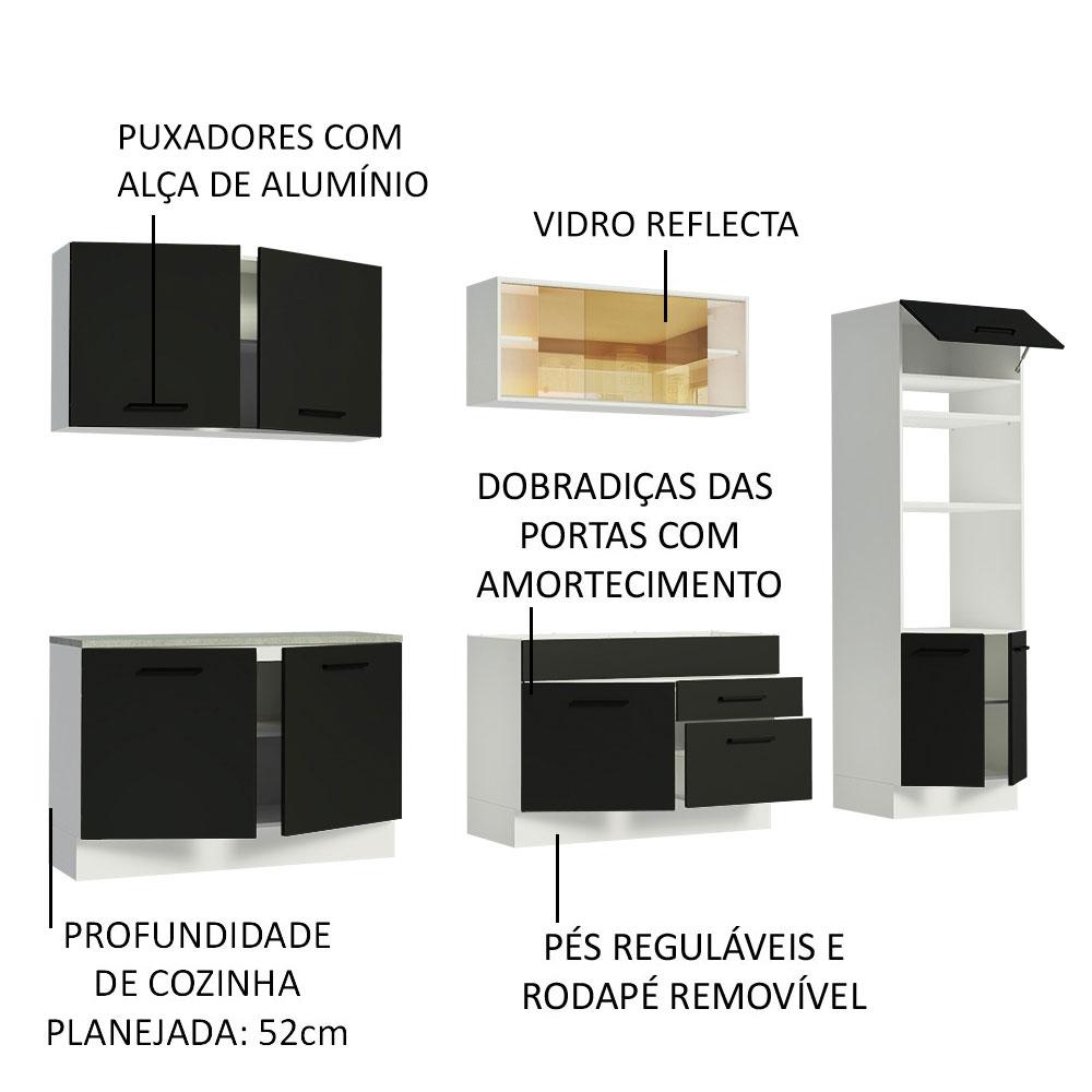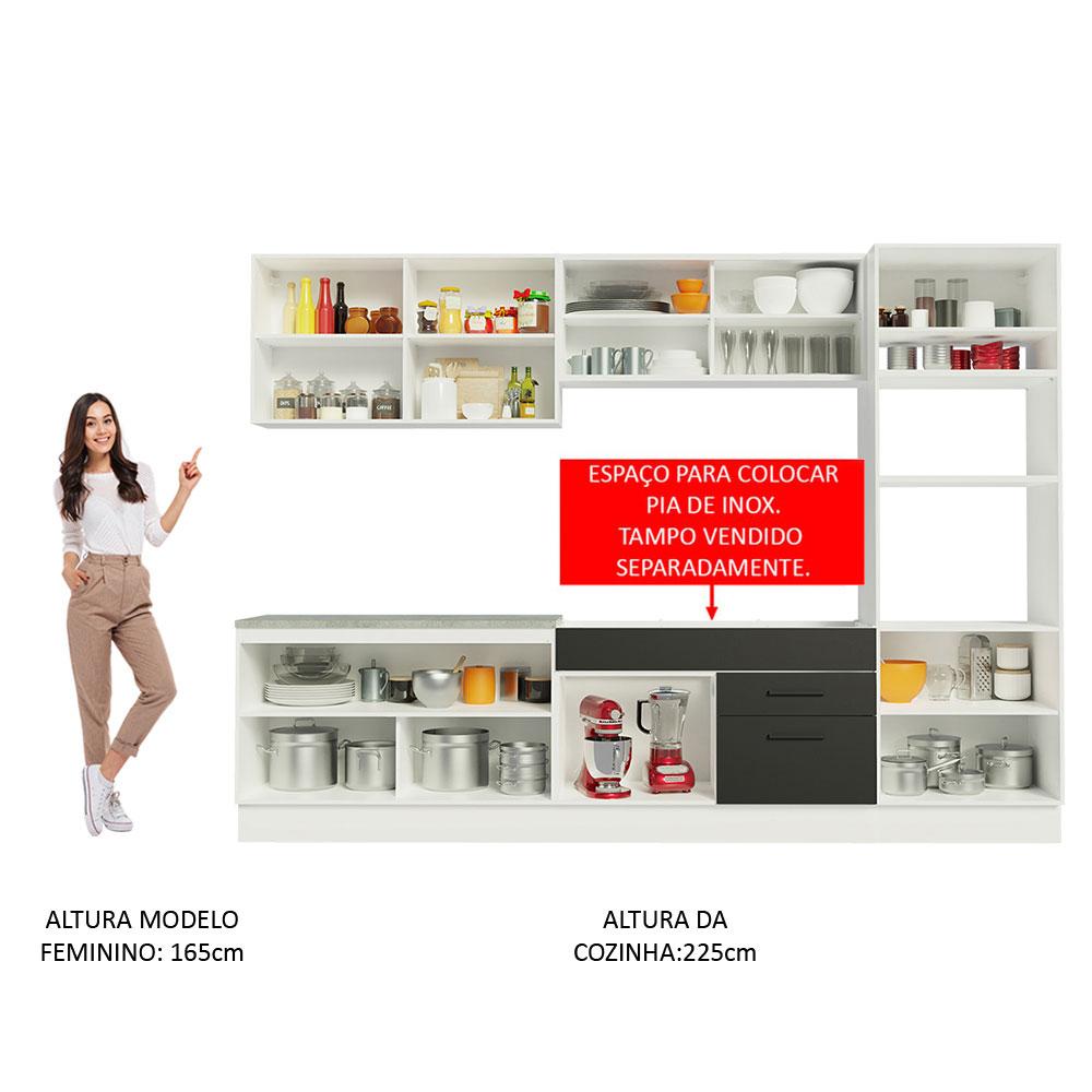 Cozinha Completa Madesa Agata 310001 com Armário e Balcão (Sem Tampo e Pia) - Branco/Preto