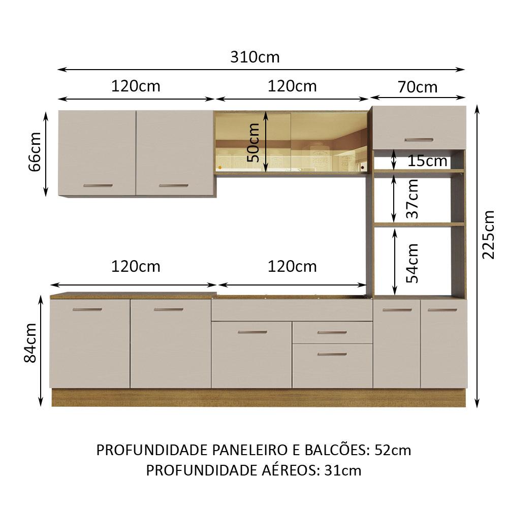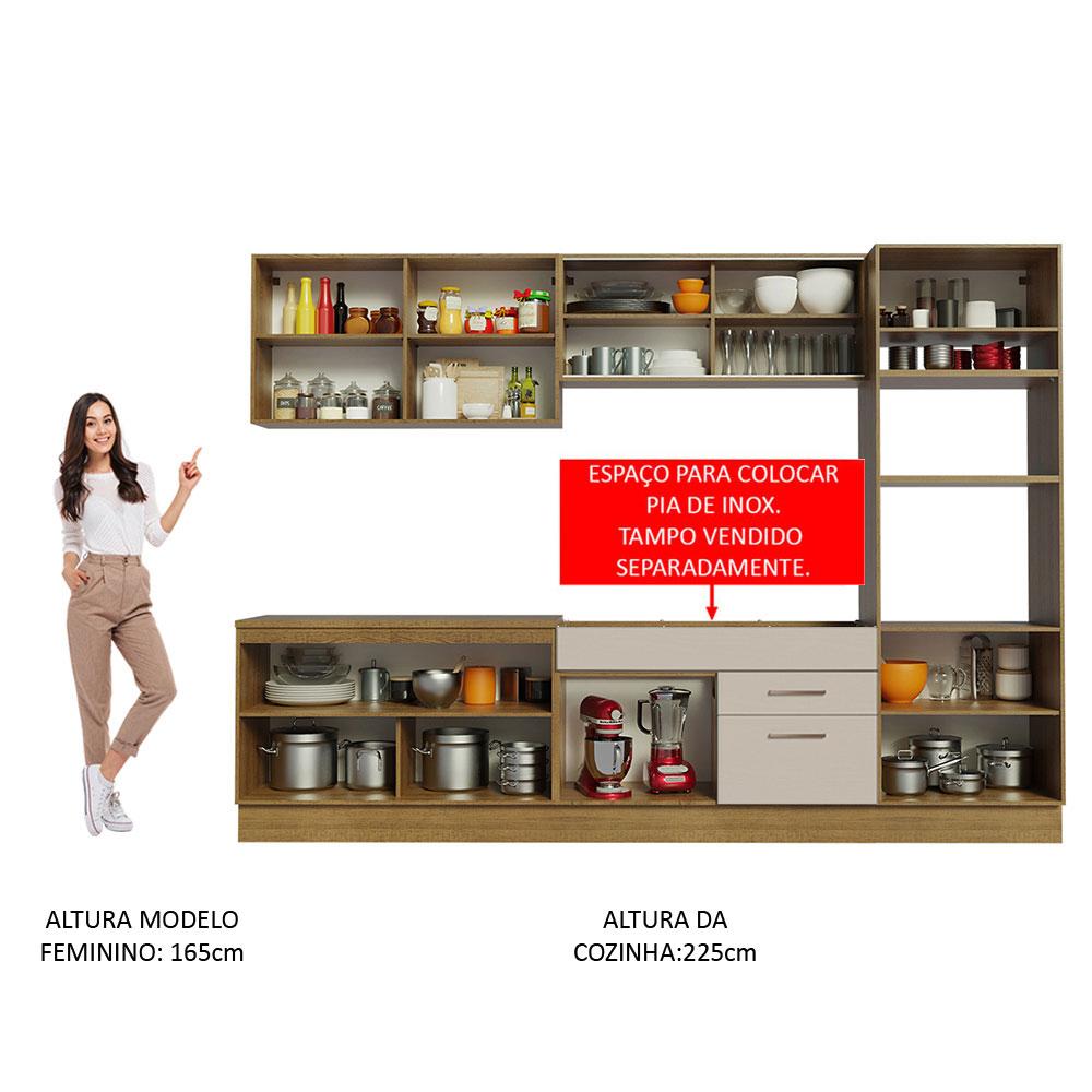 Armário de Cozinha Completa 310 cm Rustic/Crema Agata Madesa 01