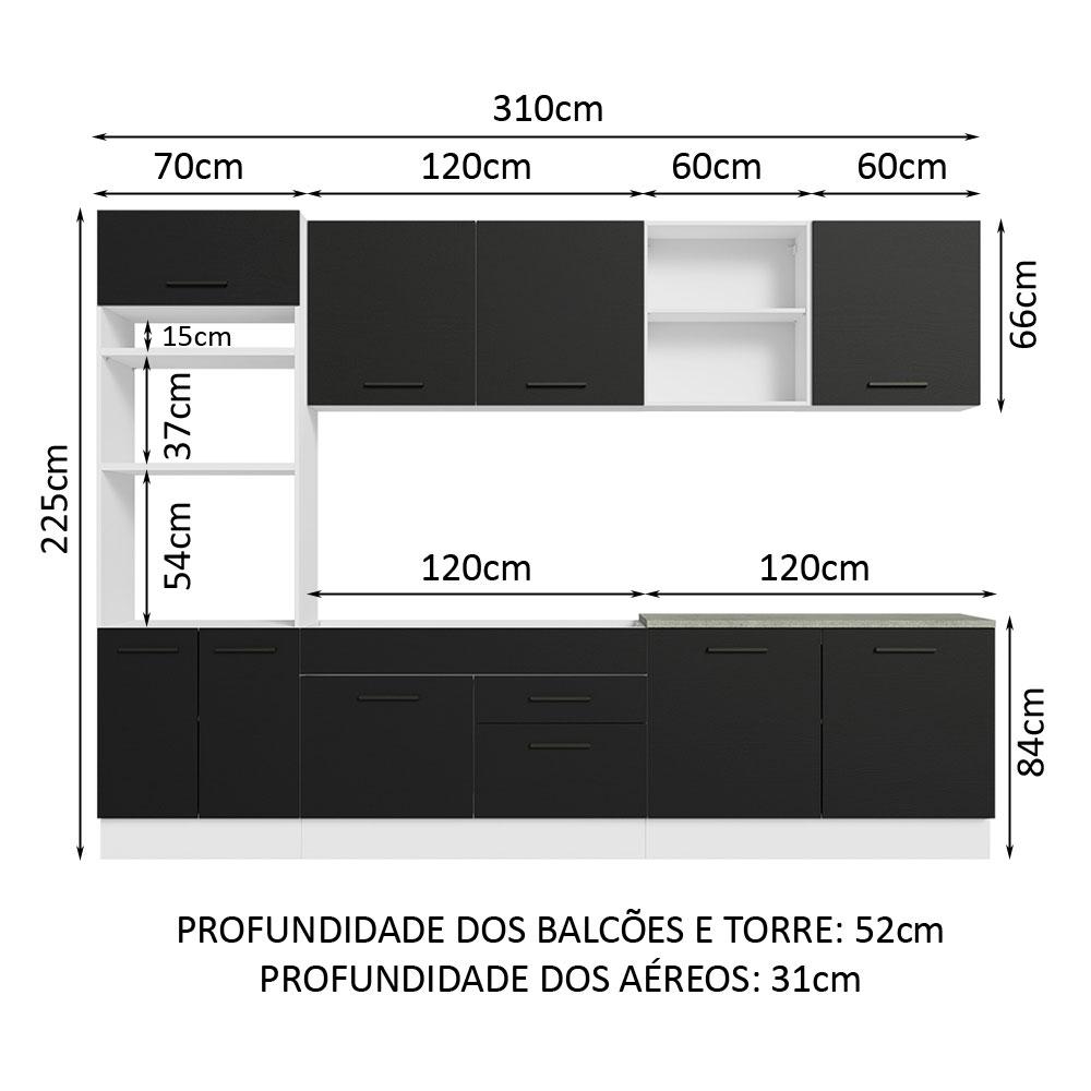 Armário de Cozinha Completa 310cm Branco/Preto Agata Madesa 02