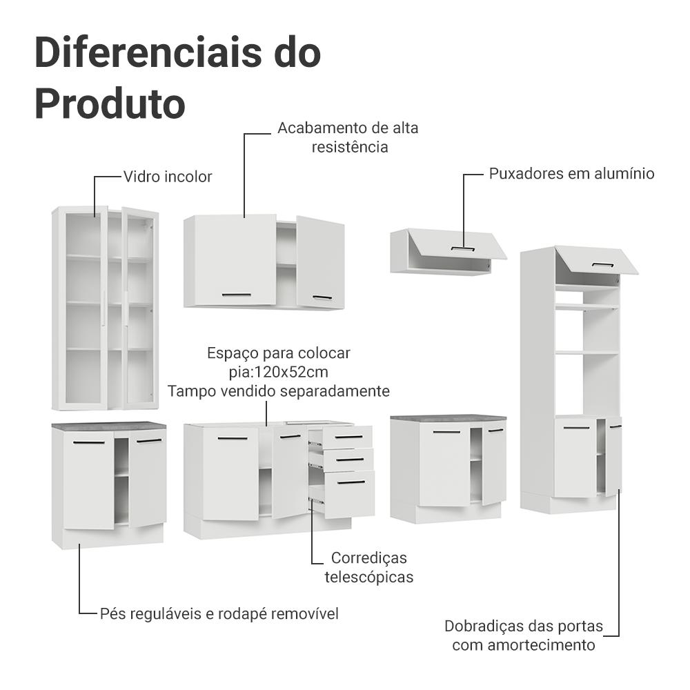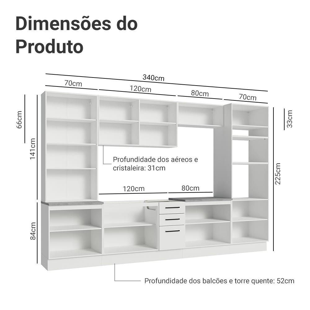 Armário de Cozinha Completa 340cm Branco Agata Madesa 01