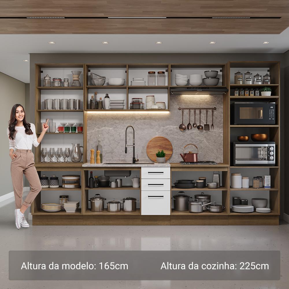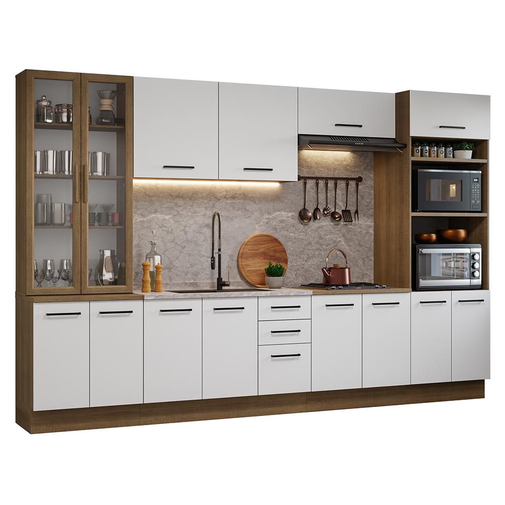 Armário de Cozinha Completa 340cm Rustic/Branco Agata Madesa 01