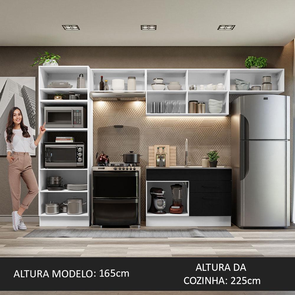 Cozinha Completa Madesa Agata 350001 com Armário e Balcão (Sem Tampo e Pia) - Branco/Preto