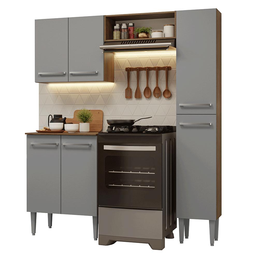 Armário de Cozinha Compacta 156 cm Rustic/Cinza Emilly Madesa 02
