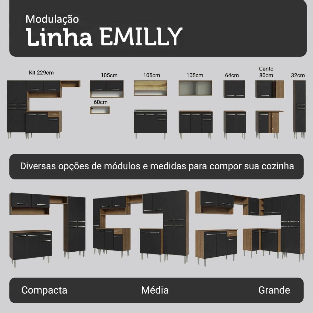 Armário de Cozinha Completa 229cm Rustic/Preto Emilly Madesa 016