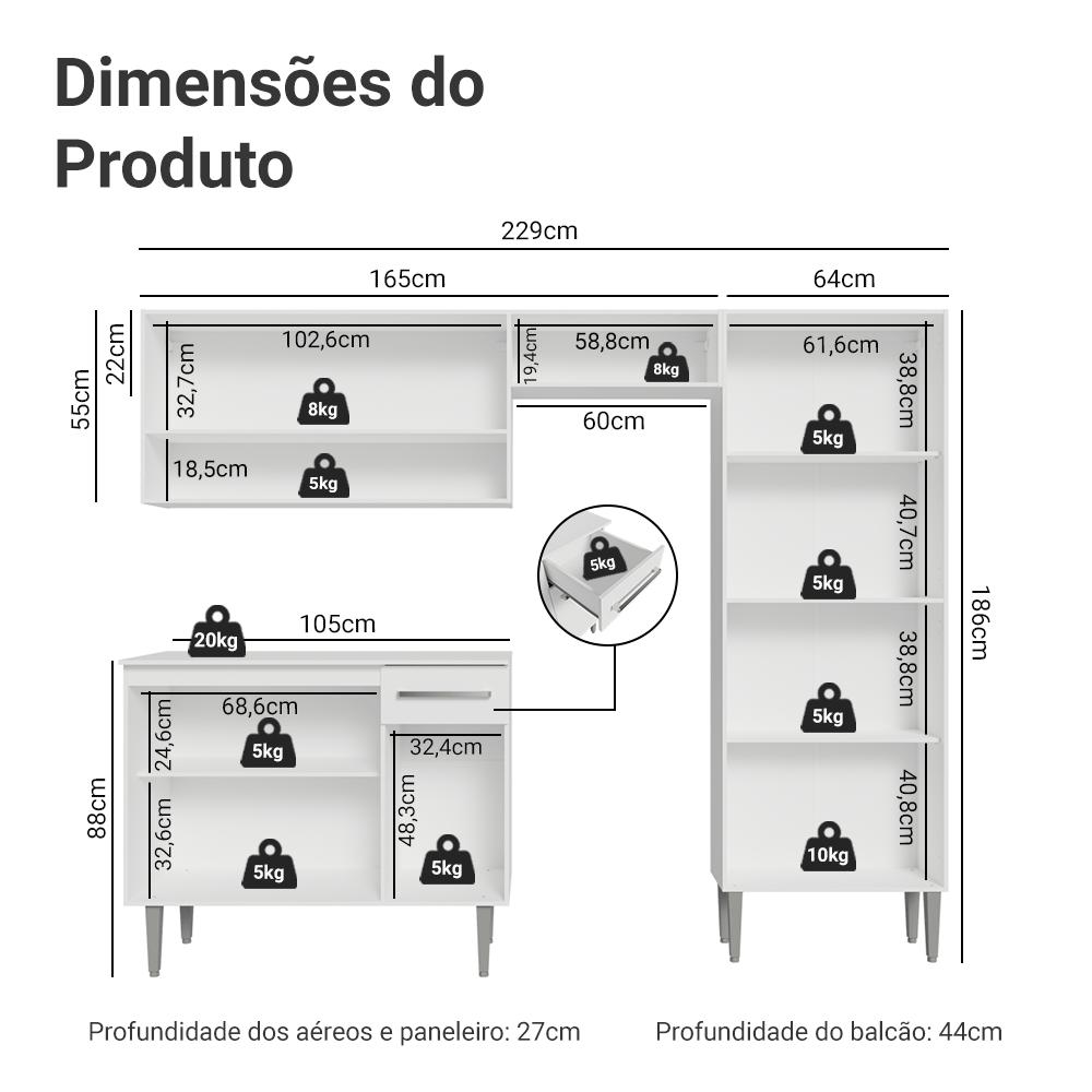 Armário de Cozinha Completa 229cm Branco Emilly Madesa 17