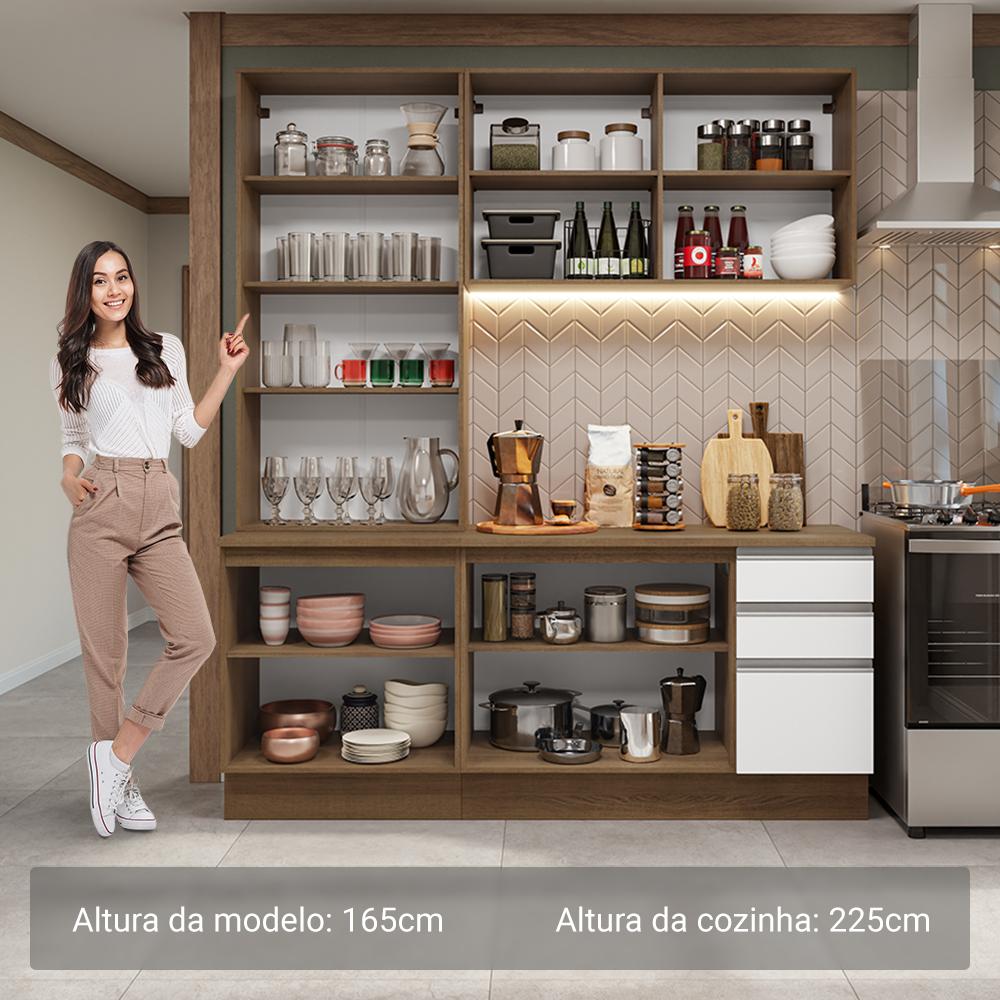 Armário de Cozinha Compacta 190cm Rustic/Branco Glamy Madesa 05